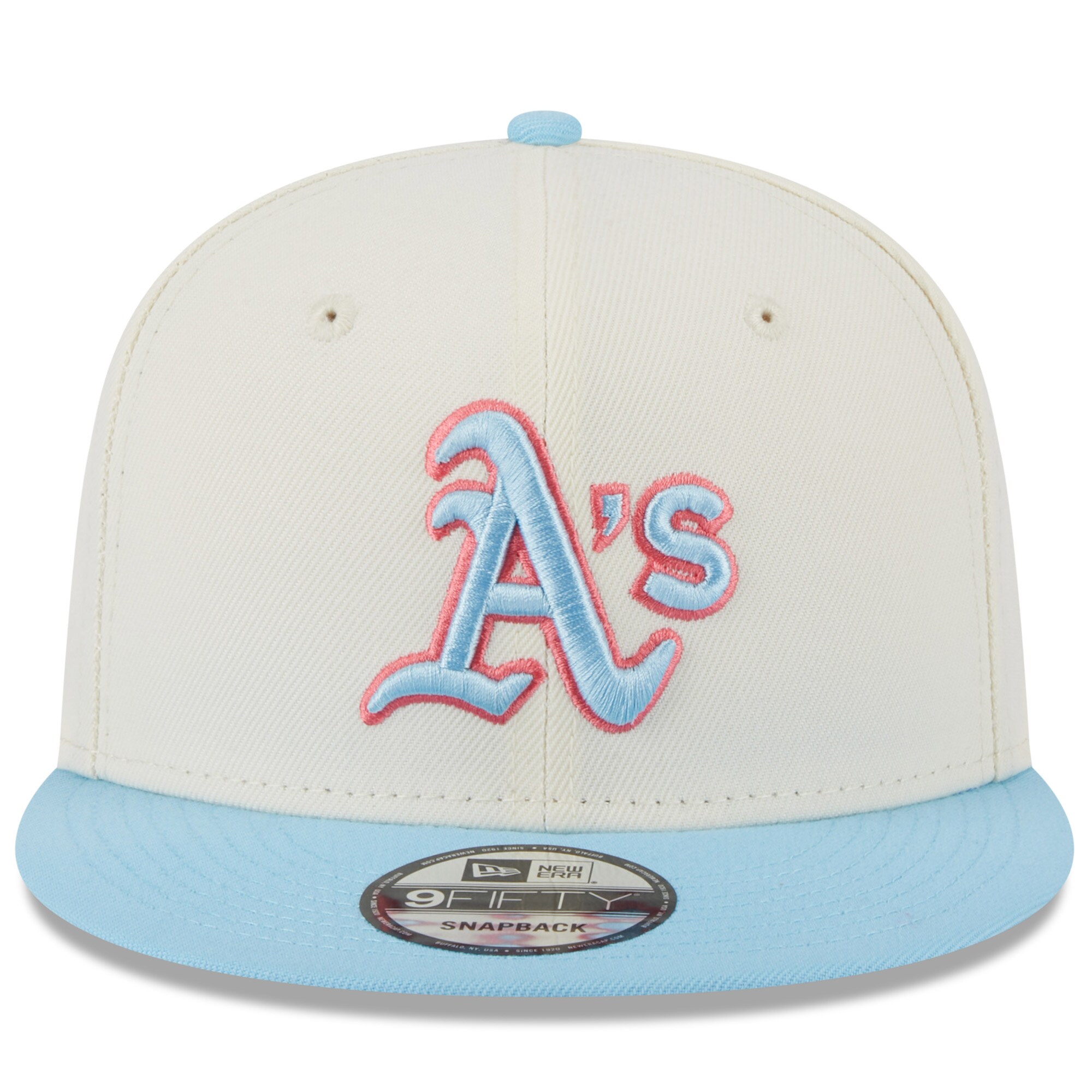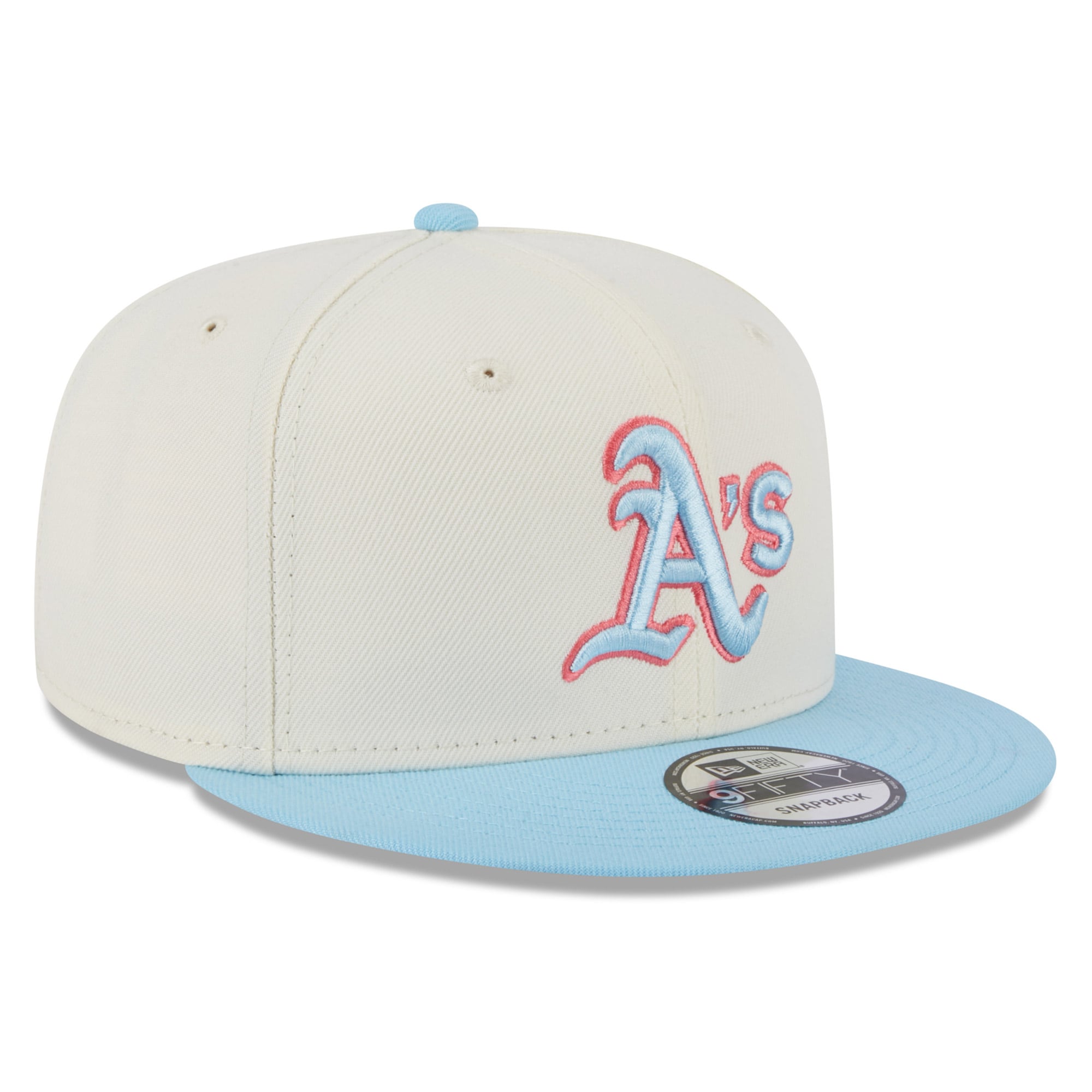 Ensure your Oakland Athletics spirit is on full display and jam-packed with vibrance when you sport this Basic Two-Tone 9FIFTY hat from New Era. It features a helpful snapback closure for a fully customizable fit and a structured construction with a high crown for a classic flat bill aesthetic. Distinct Oakland Athletics embroidery on the front panels and spring-inspired colorway keep your fandom at the forefront of any outfit.