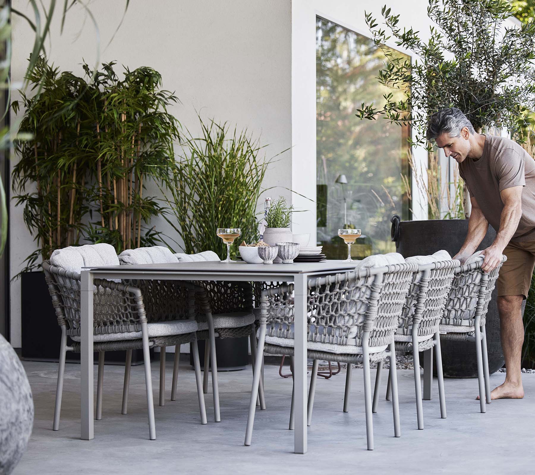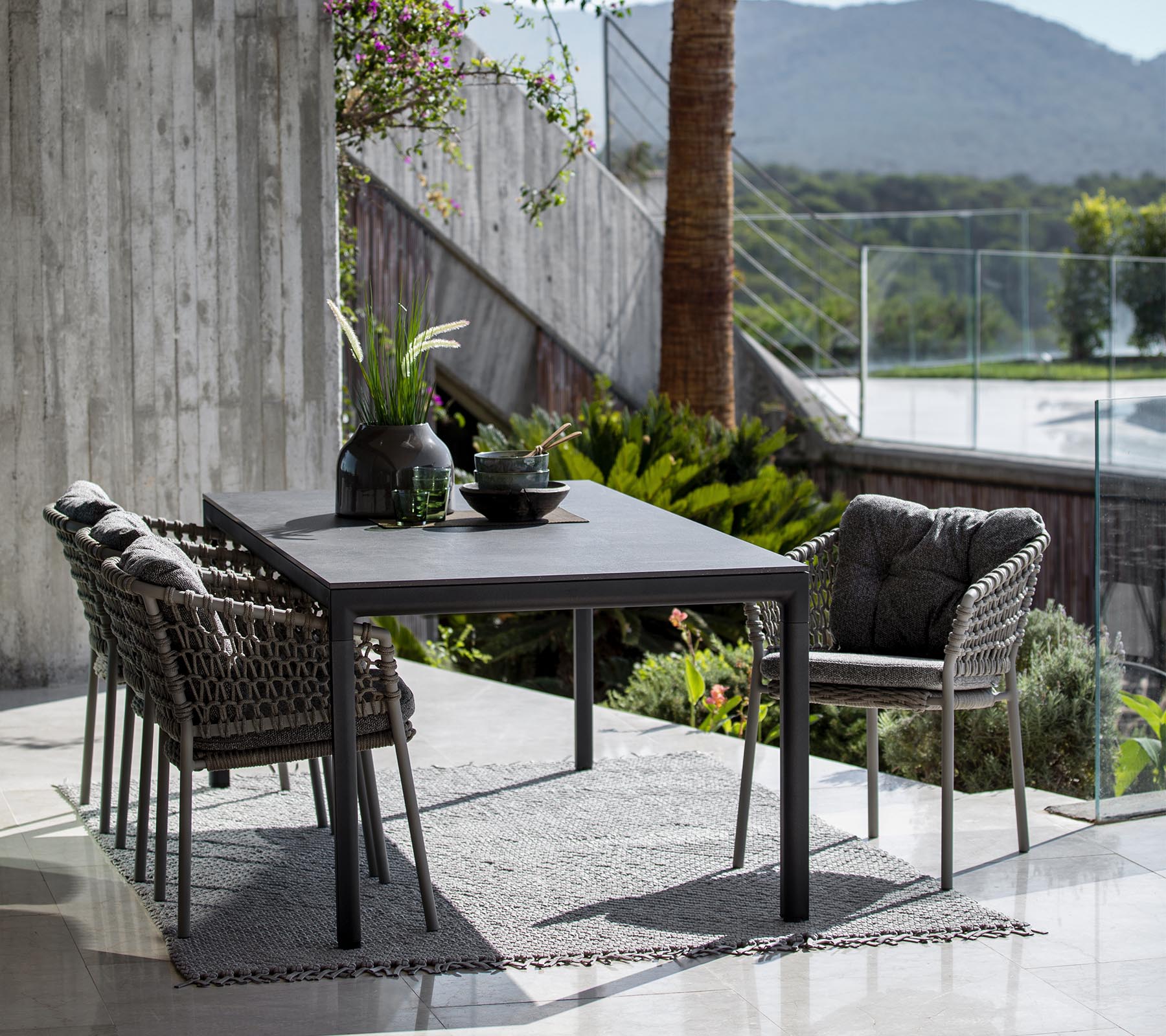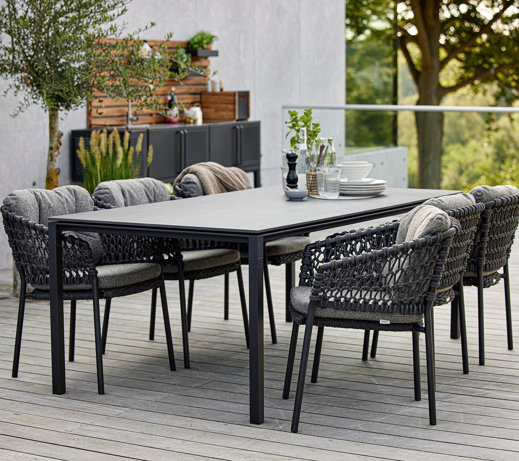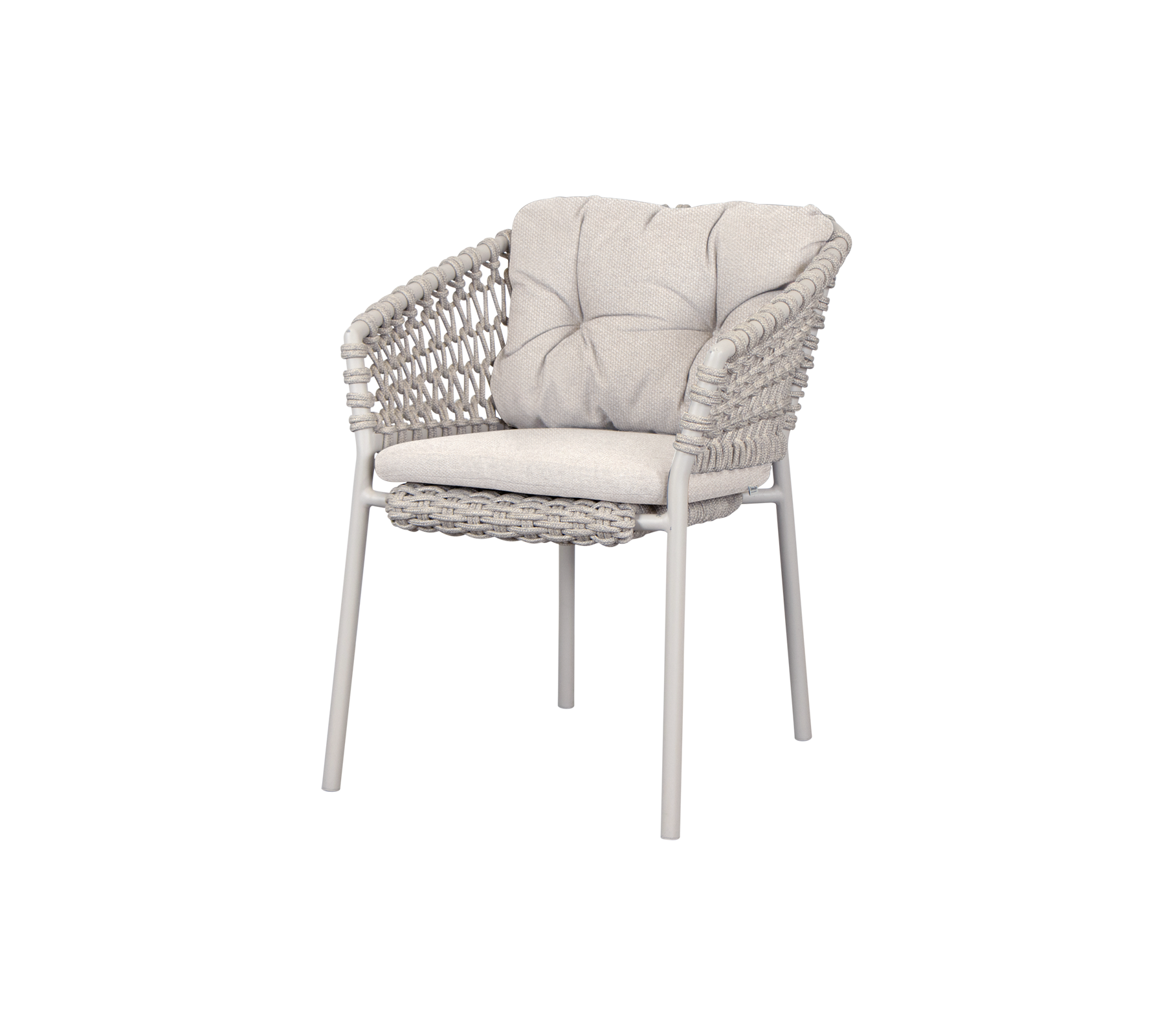 Designed by Cane-line Design, Ocean is a combination of a modern design and the traditional craftsmanship. Ocean is elegantly designed in strong Cane-line Soft Rope, aluminum frame, and with an incredibly soft and comfortable cushion in Cane-line Nattéor Cane-line Wove. The lightweight frame and the transparent expression provide a very light look, together with the soft seat and back cushion, Ocean offers both unique comfort and a visually beautiful aesthetic.