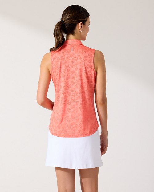 Dress up your performance wear with a stylish top that boasts a preppy collar and tech properties that wicks away moisture to keep you dry.