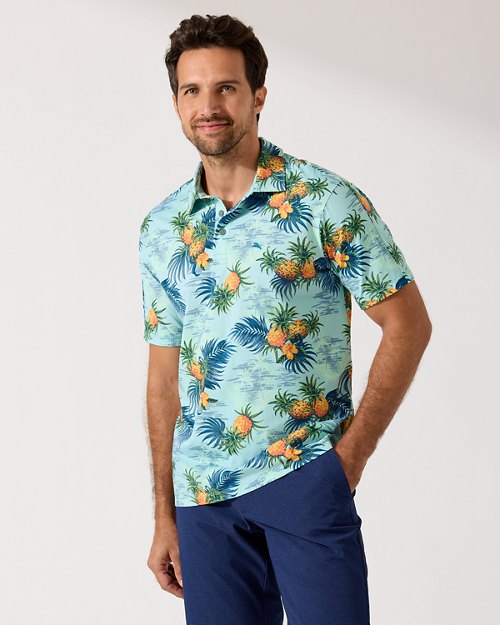 Let's <i>Brrr°ing</i> on the heat! The Palm Desert Pi a Isle Polo is ready for all your summer plans. This performance polo features cooling minerals powered by <b>Brrr° Technology</b>, which works hard to help you feel cool and dry, no matter the occasion. Plus, with a vibrant pineapple-inspired print, you can hit cocktail hour ready to party.