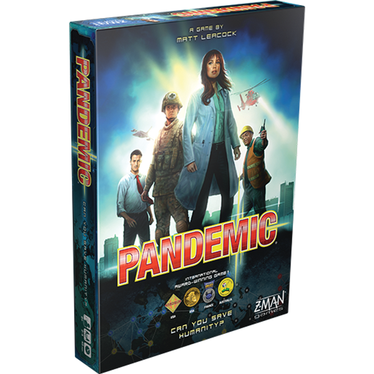 From designer Matt Leacock, Pandemic is a cooperative game of teamwork for two to four players. As members of an elite disease control team, you must keep four deadly diseases at bay. Work together as you travel the globe to treat infections while collecting the cards you need to discover a cure for each disease. But the clock is ticking as outbreaks and epidemics fuel the spreading plagues. As a cooperative game, players win or lose together. Only by working together can you keep the outbreaks in check and find the cures in time!