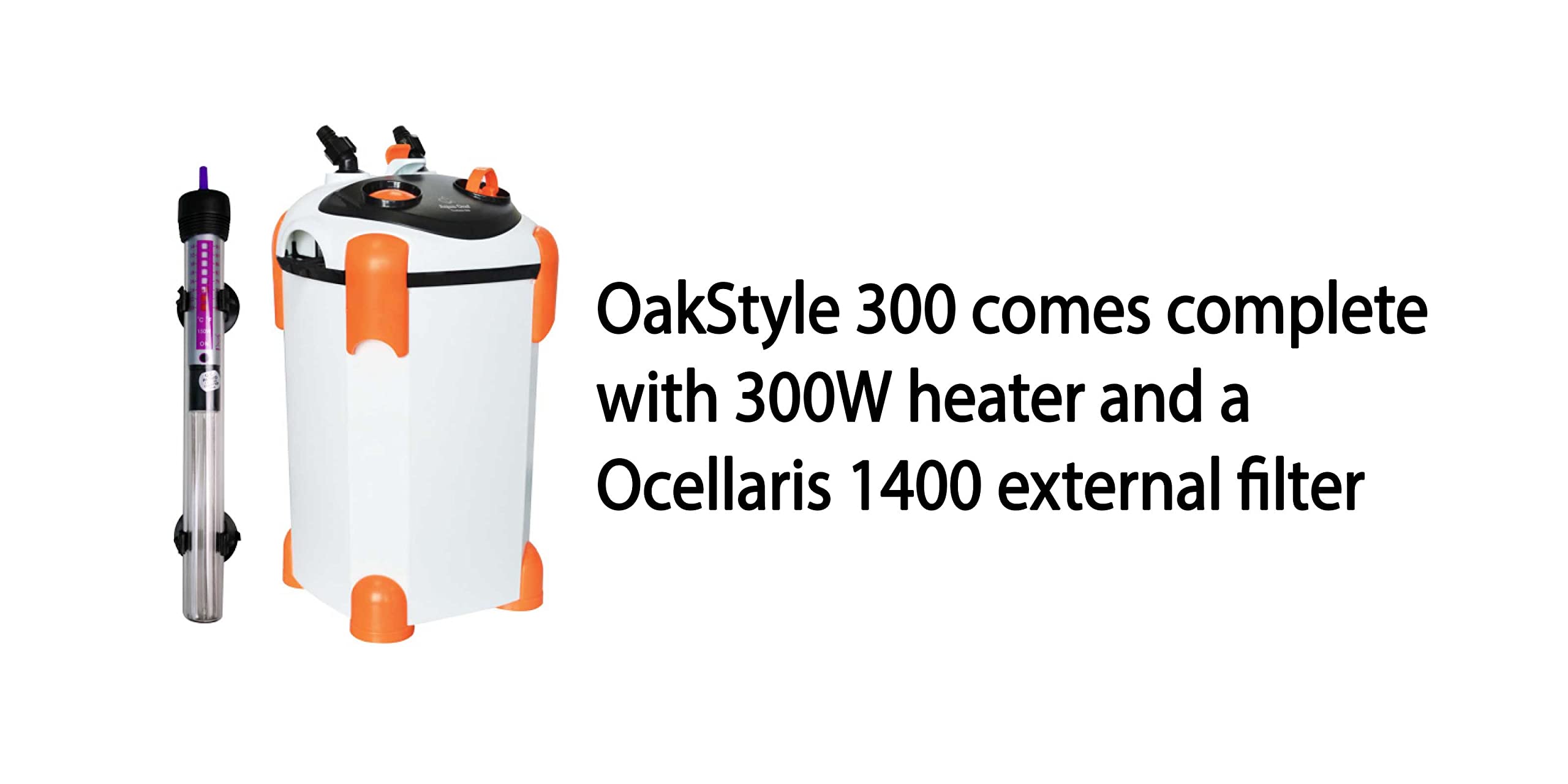 The Oak Style & Oak Shades aquarium range offers the perfect combination of the classic robust oak look but with a modern lightness to it Included with all Oak Style aquariums is powerful LED lighting and an Aqua One heater to allow for a tropical fish set-up. Slim line LED lighting includes fully adjustable supports featuring white & RGB LED's with separate blue LED's for night time viewing. The AquaOne Oak Style comes complete with an Ocellaris Canister Filter which is quiet running, energy efficient and powerful. This external filter comes complete with all the media required to enable you to set up quickly and includes a quick release tap system and built in primer.