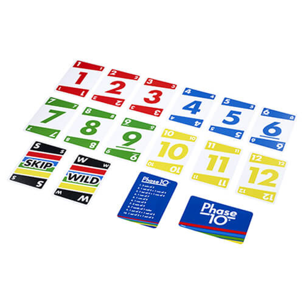 From the makers of UNO™ comes a rummy-type card game with a challenging and exciting twist! The object of the game is to be the first player to complete 10 varied phases with two sets of three, one run of seven, or seven cards with the same color. The twist is that each Phase to be completed is specific for each hand dealt. Players who complete one Phase advance to the next, but those who don't must keep trying until they do. Each deck features “Wild” and Skip” cards, which add excitement and can help you get out of a sticky situation. A “Wild” card can be used in place of a number card, as well as be used as any color to complete any phase, while a “Skip” card causes your opponent to lose a turn! Be the first person to complete all ten phases to win the game.
