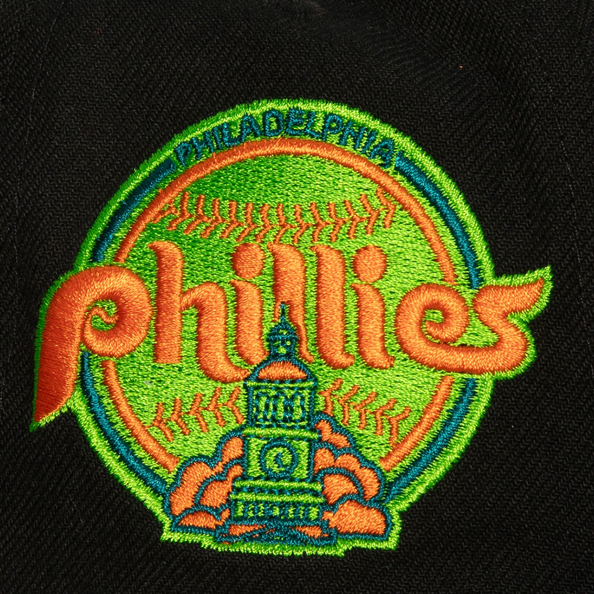 Brighten up your collection of Philadelphia Phillies gear with this Citrus Cooler snapback hat from Mitchell & Ness. The Philadelphia Phillies graphics embroidered on the front panels and the vibrant bill contrast against the black crown for an eye-catching look. The snap closure also makes it easy to secure the perfect fit when you want to top your game day look off with a twist.