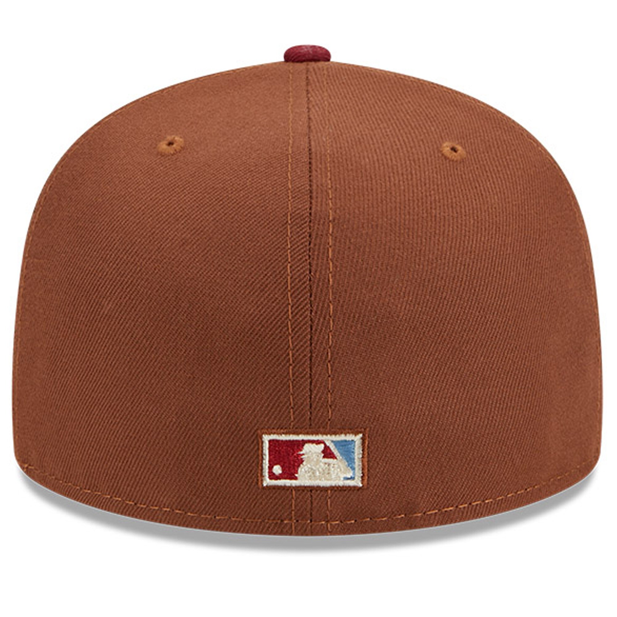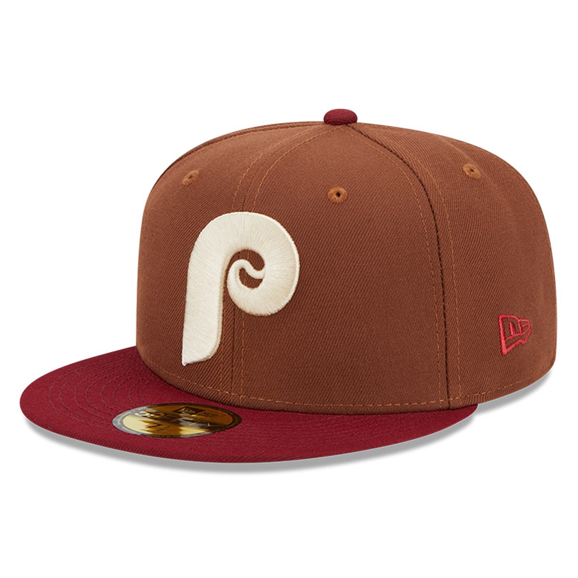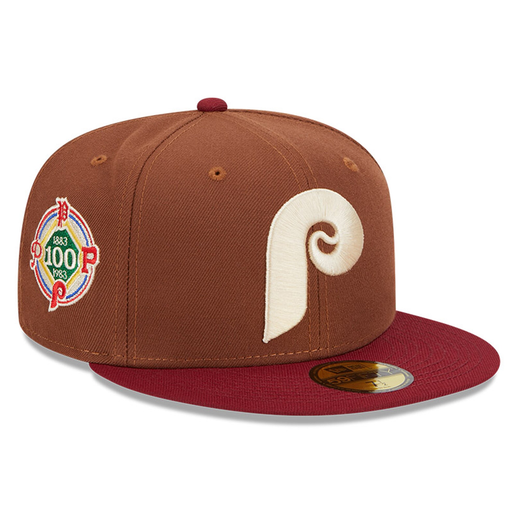 Cheer on the Philadelphia Phillies with this Harvest 100th Anniversary 59FIFTY fitted hat from New Era. It features the team's logo in autumn-spired colors on the front and a 100th Anniversary side patch. Add a historic touch to any Philadelphia Phillies look with this timeless hat.