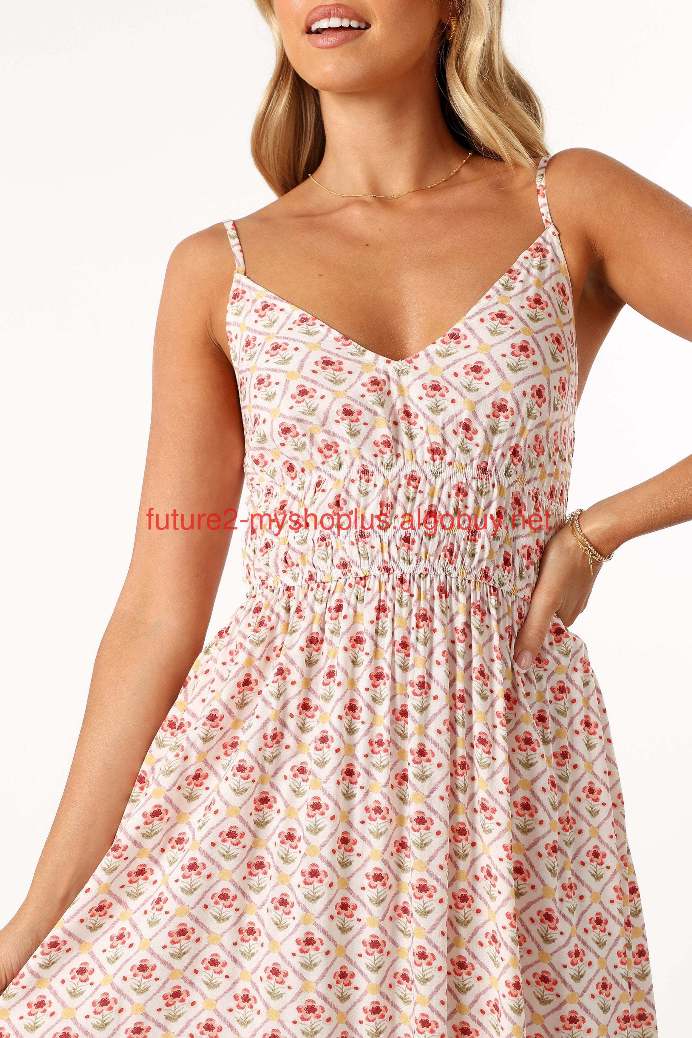 DETAILS This trendy A-line pleated skirt will have you twirling with joy. The chic v-neckline and thin adjustable shoulder straps are perfect for soaking up the sunshine, while the elasticised waistband and shirred back panel ensure a comfy, flattering fit.