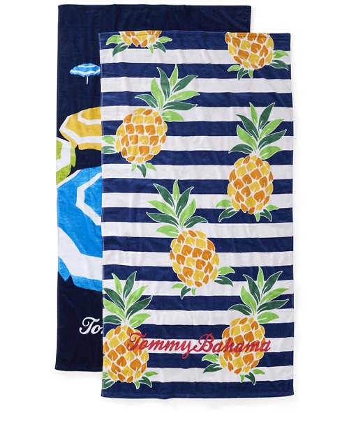 • Pineapple Cabana and Umbrella Party Beach Towels - Set of 2