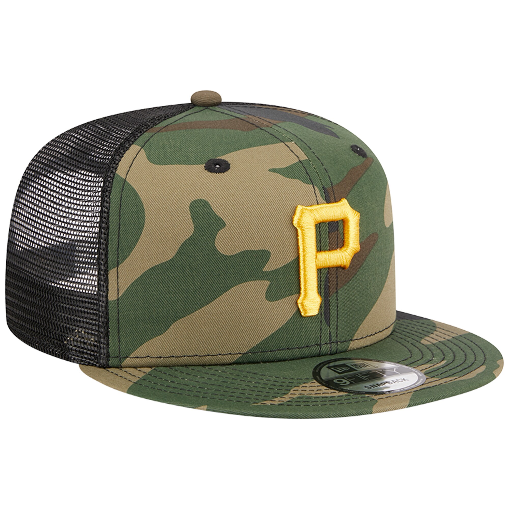 Pay a nod to your favorites each time you step out by reaching for this Pittsburgh Pirates Woodland Trucker 9FIFTY hat. This bold snapback from New Era features an unmissable Pittsburgh Pirates logo embroidered on the crown and mesh mid and rear panels for a breezy feel. In addition its rugged camo pattern on the front panels shows that your unrelenting team spirit is nothing to hide.