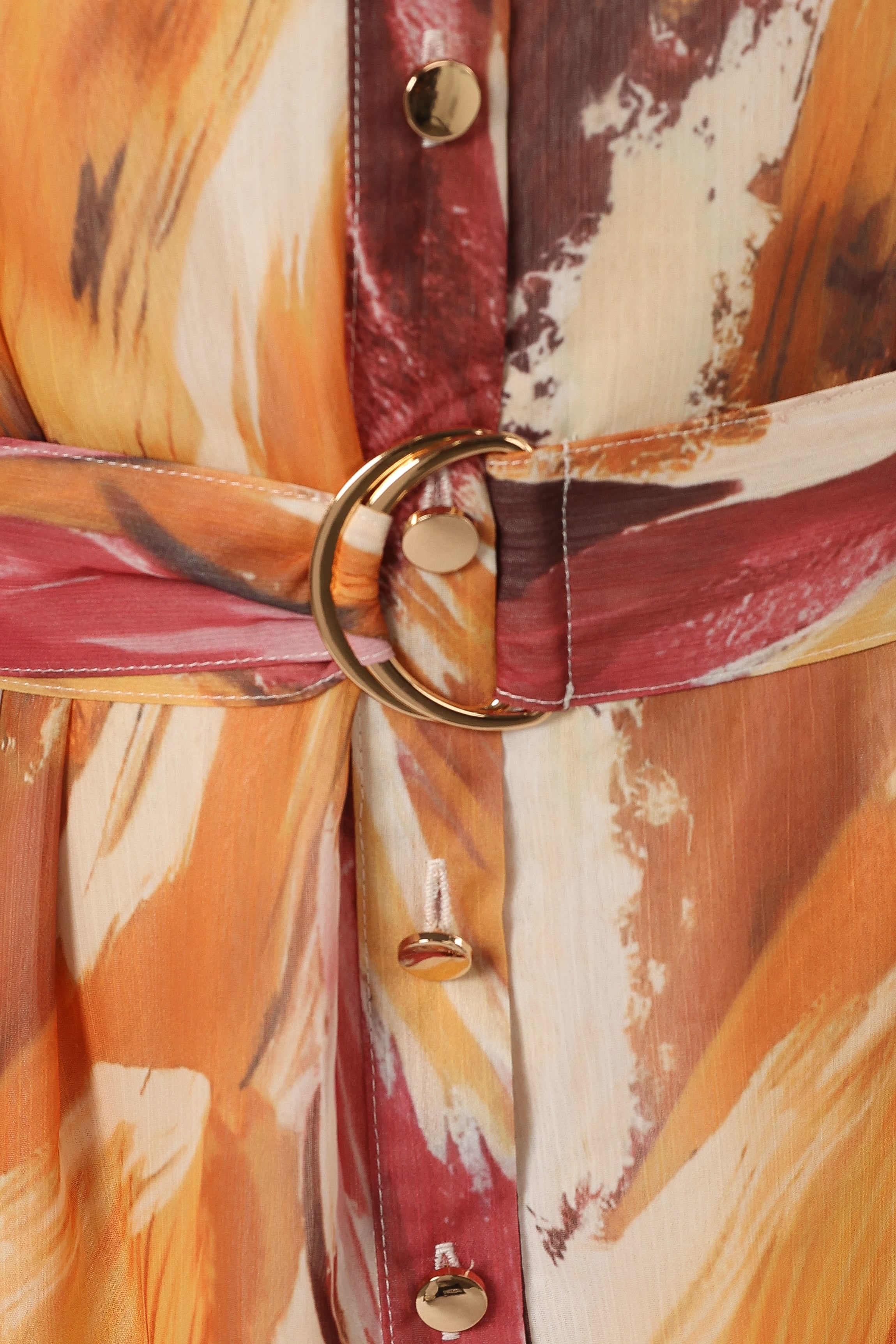 | DETAILS You'll be turning heads in this stylish mini length dress. A classic high neckline and long sleeves with button cuffs give it a polished look, while functional buttons down the front and detachable belt add an eye-catching element.