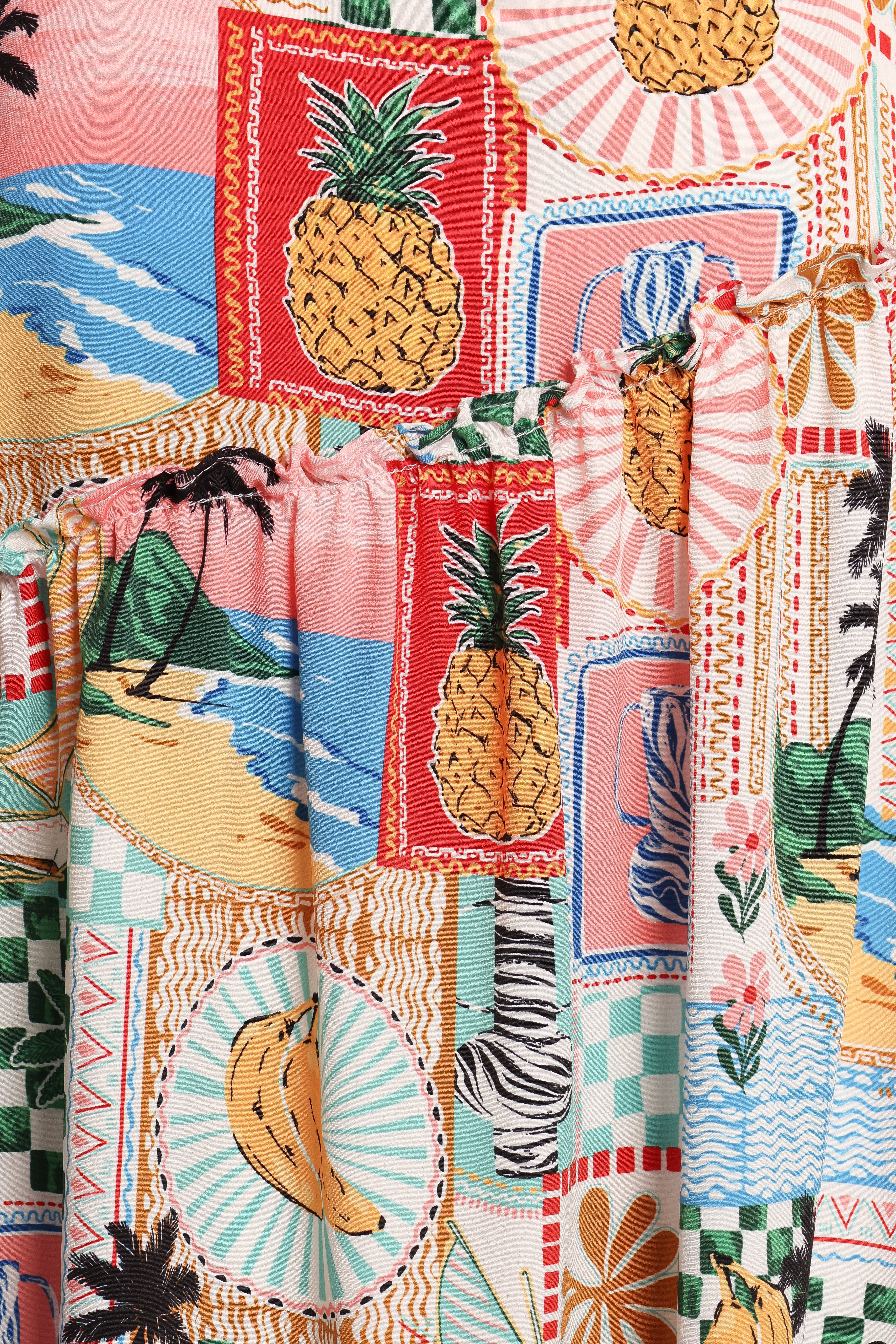 DETAILS The Rafaela Mini Dress in Off White Multi is your go-to ensemble for effortless style with a tropical twist. Its square neckline and wide straps create a timeless silhouette that's as comfortable as it is chic.
