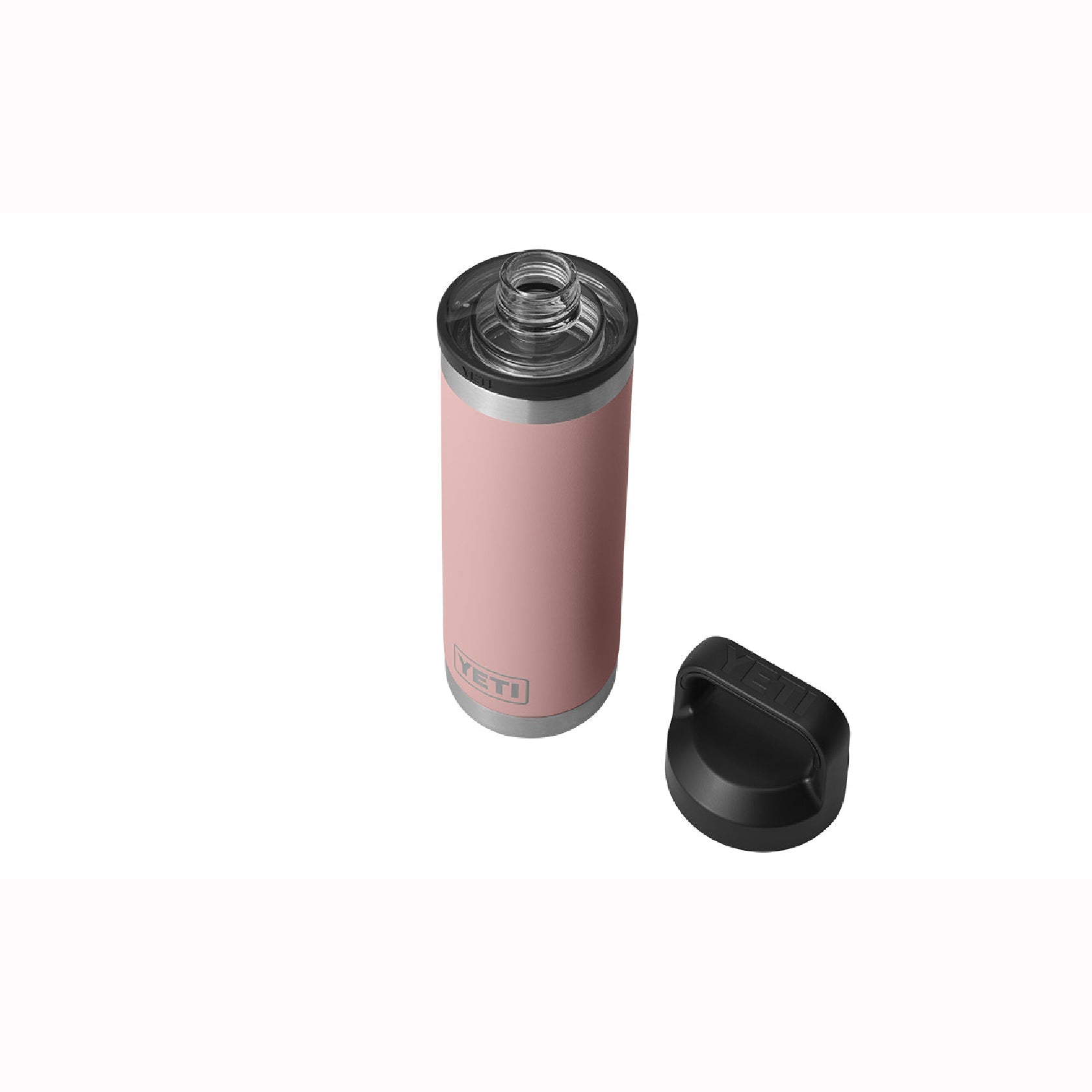 The Rambler? 18 oz. Bottle is a necessary addition to your morning hikes, kayak trips, and daily commutes. This tough bottle is double-wall vacuum insulated to keep your water cold until the last sip, dishwasher safe for easy cleaning, and comes standard with the Chug Cap. With a quick twist, the TripleHaula??handle comes off, exposing our shatter-resistant, dishwasher safe spout that allows for controlled gulps on the go. When it?��s time for a wash or refill, remove the entire cap to expose the bottle?��s wide mouth. Separate your Rambler from the herd with your choice of stainless, DuraCoata??Color and Seasonal finishes.