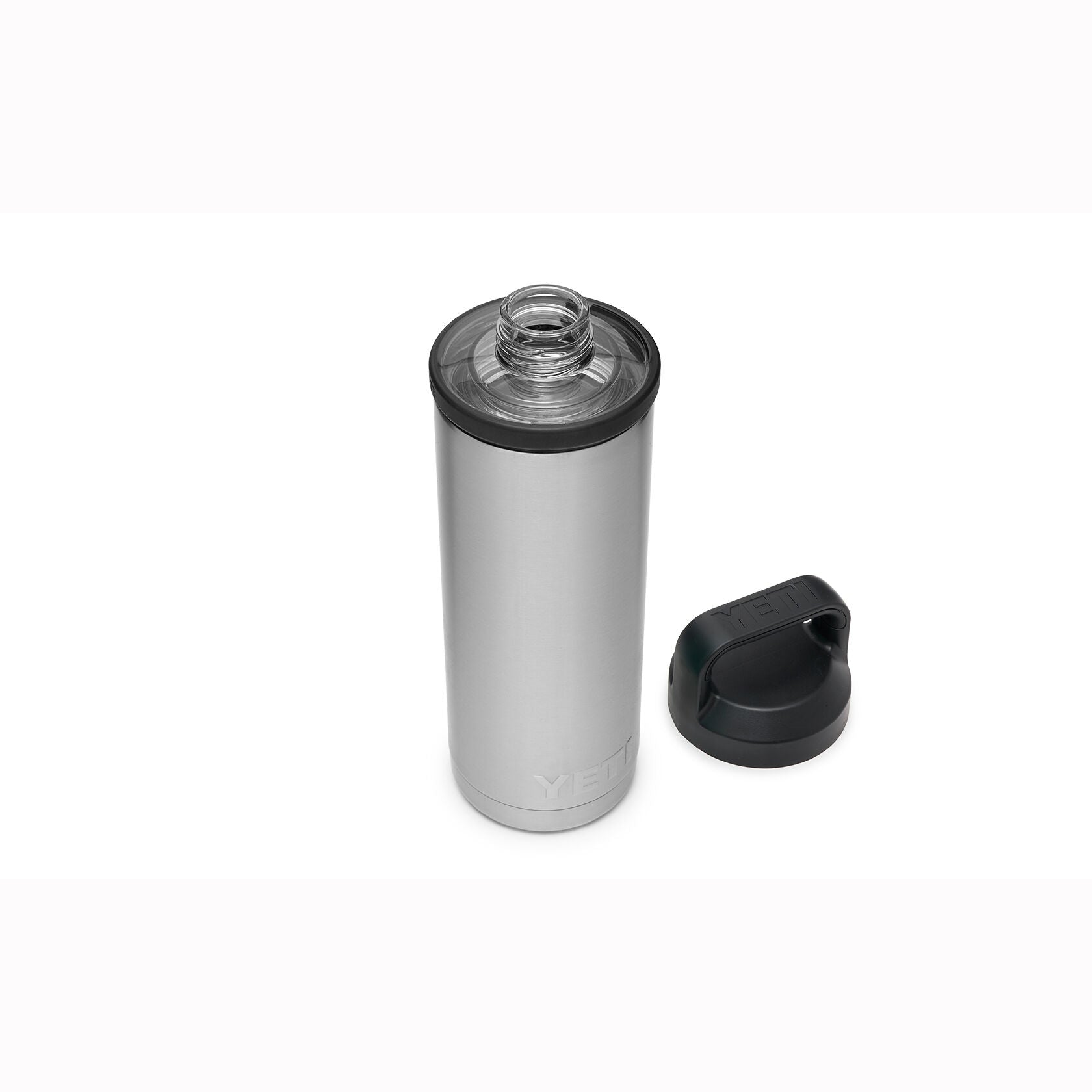 The Rambler? 18 oz. Bottle is a necessary addition to your morning hikes, kayak trips, and daily commutes. This tough bottle is double-wall vacuum insulated to keep your water cold until the last sip, dishwasher safe for easy cleaning, and comes standard with the Chug Cap. With a quick twist, the TripleHaula??handle comes off, exposing our shatter-resistant, dishwasher safe spout that allows for controlled gulps on the go. When it?��s time for a wash or refill, remove the entire cap to expose the bottle?��s wide mouth. Separate your Rambler from the herd with your choice of stainless, DuraCoata??Color and Seasonal finishes.