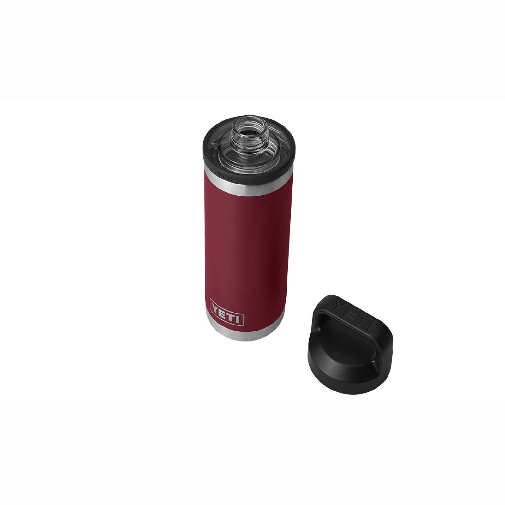 The Rambler? 18 oz. Bottle is a necessary addition to your morning hikes, kayak trips, and daily commutes. This tough bottle is double-wall vacuum insulated to keep your water cold until the last sip, dishwasher safe for easy cleaning, and comes standard with the Chug Cap. With a quick twist, the TripleHaula??handle comes off, exposing our shatter-resistant, dishwasher safe spout that allows for controlled gulps on the go. When it?��s time for a wash or refill, remove the entire cap to expose the bottle?��s wide mouth. Separate your Rambler from the herd with your choice of stainless, DuraCoata??Color and Seasonal finishes.