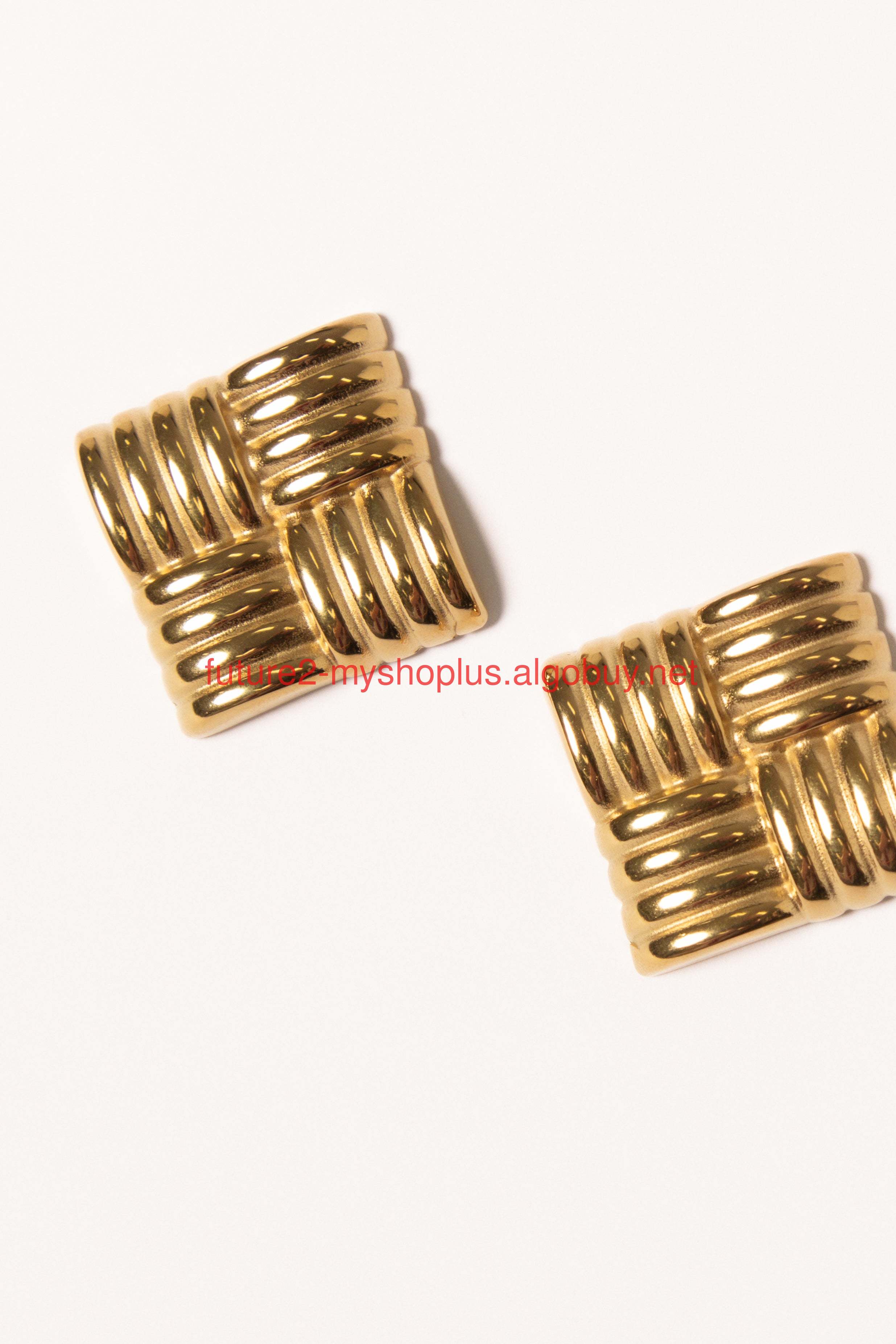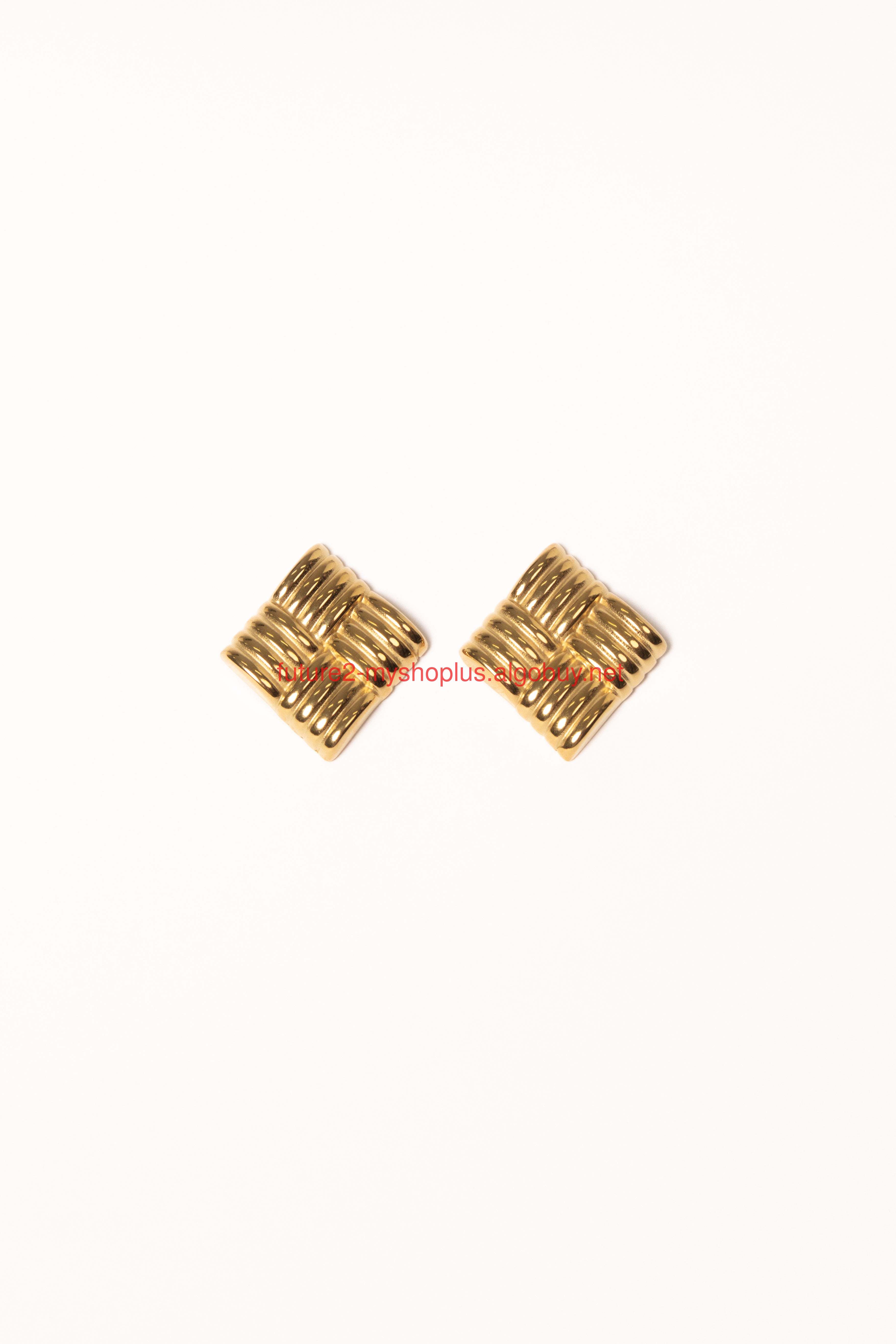 DETAILS Elevate your everyday look with the effortlessly chic Rinna Earrings in Gold. Featuring a bold, large square design with an intricately woven texture, these earrings are a modern twist on a timeless statement piece.