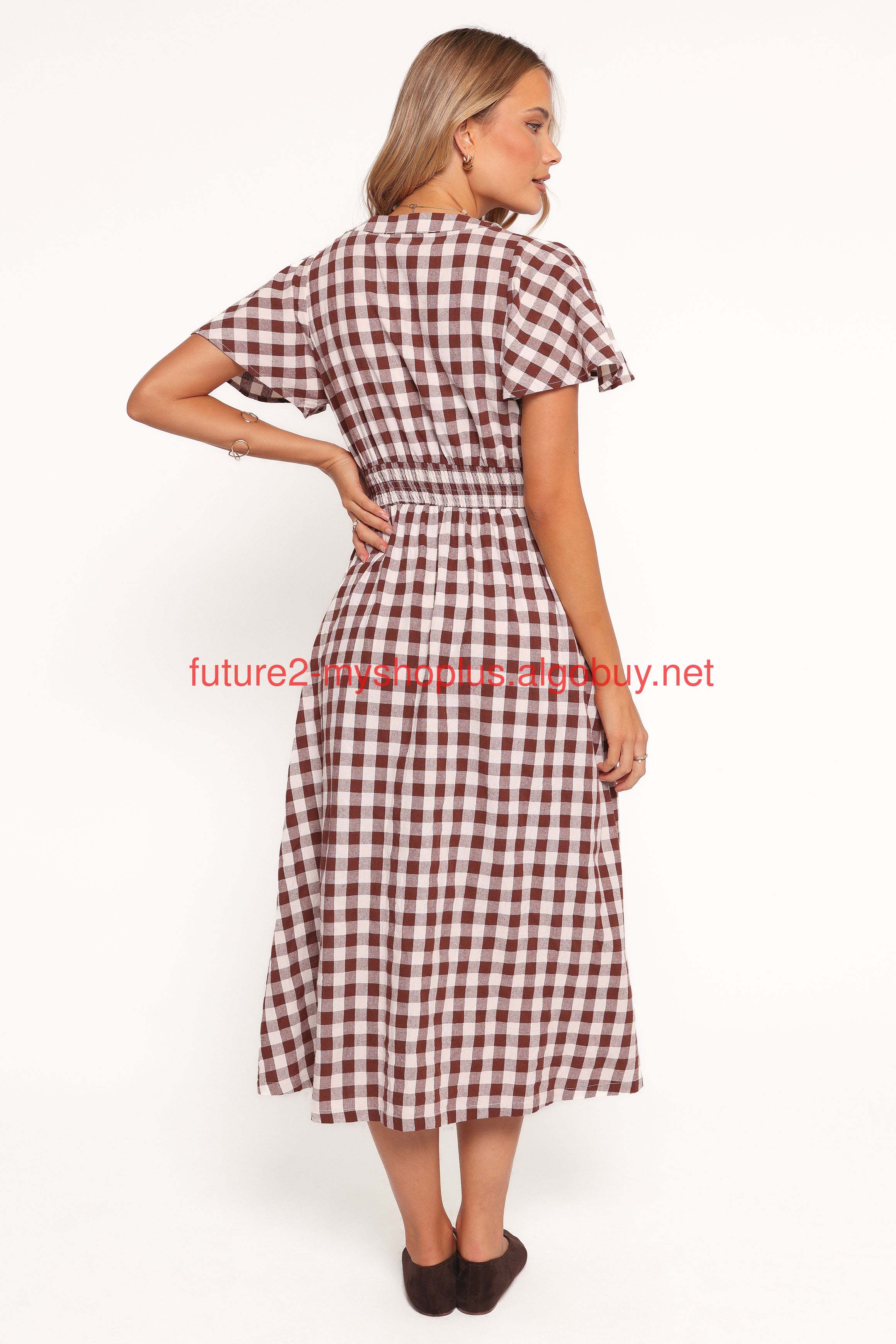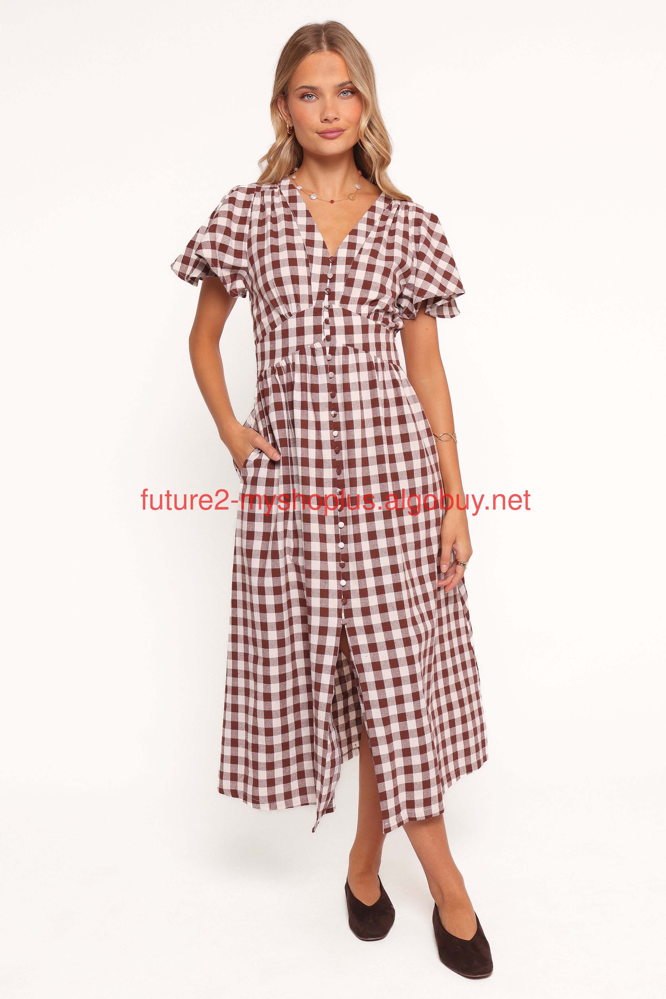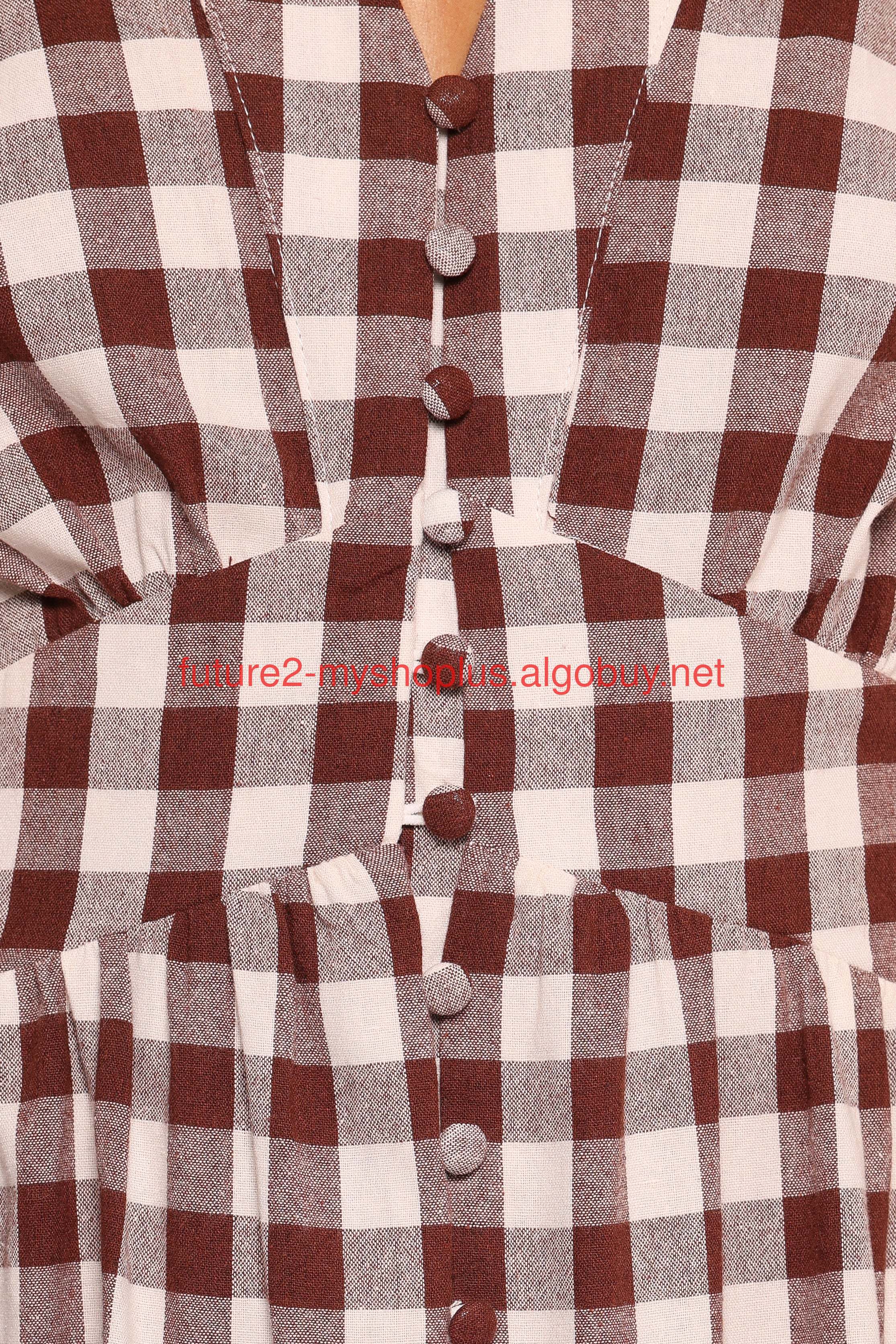 DETAILS Effortless style meets everyday comfort with the Robinson Maxi Dress in brown gingham. This maxi-length dress is designed to flow with grace, featuring a flattering v neckline and short sleeves for an understated yet elegant silhouette.