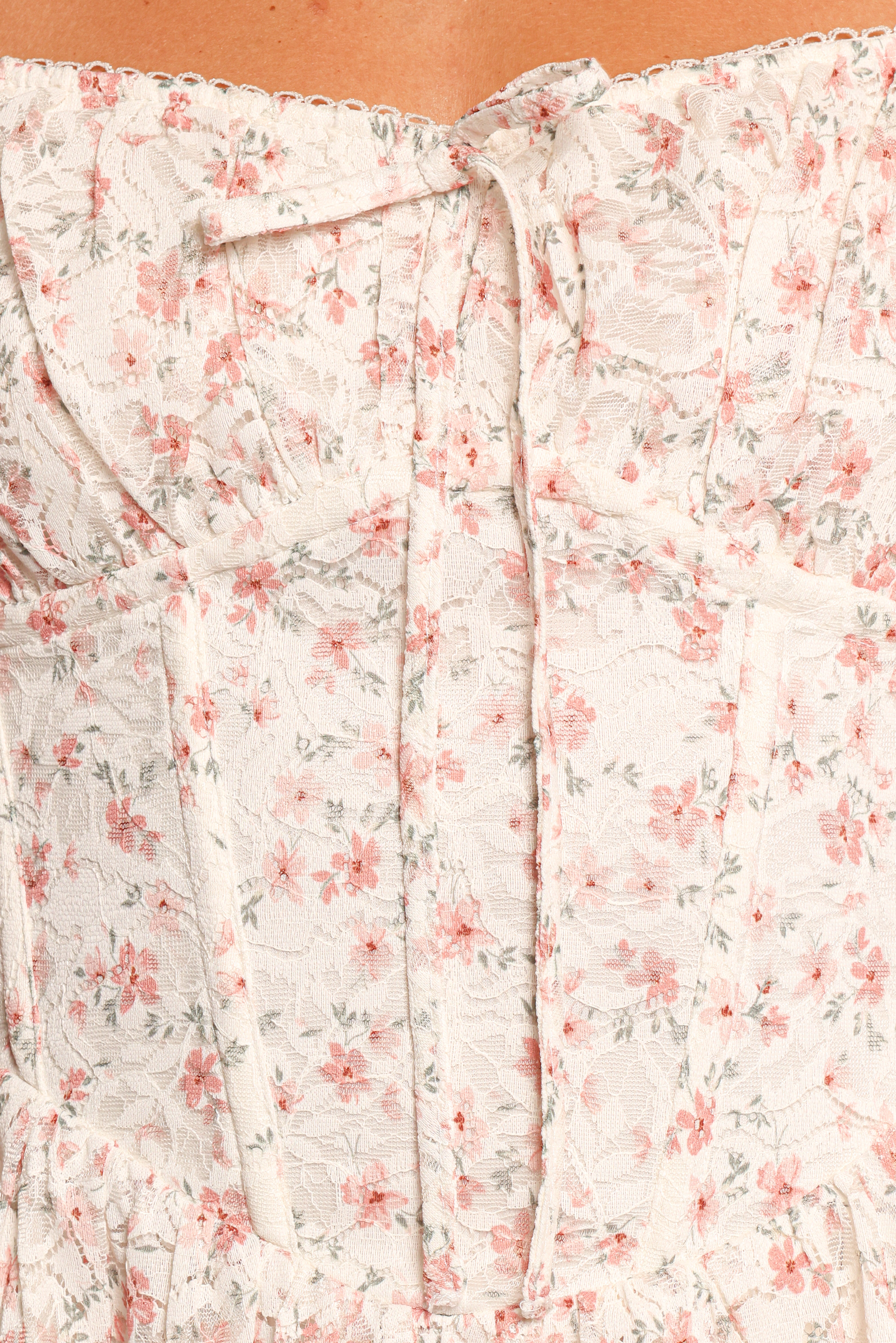 DETAILS Step into effortless elegance with the Sabella Mini Dress in Blush Azalea. This head-turning piece features a flattering square neckline and delicate floral lace overlay, blending sophistication with a touch of whimsy.