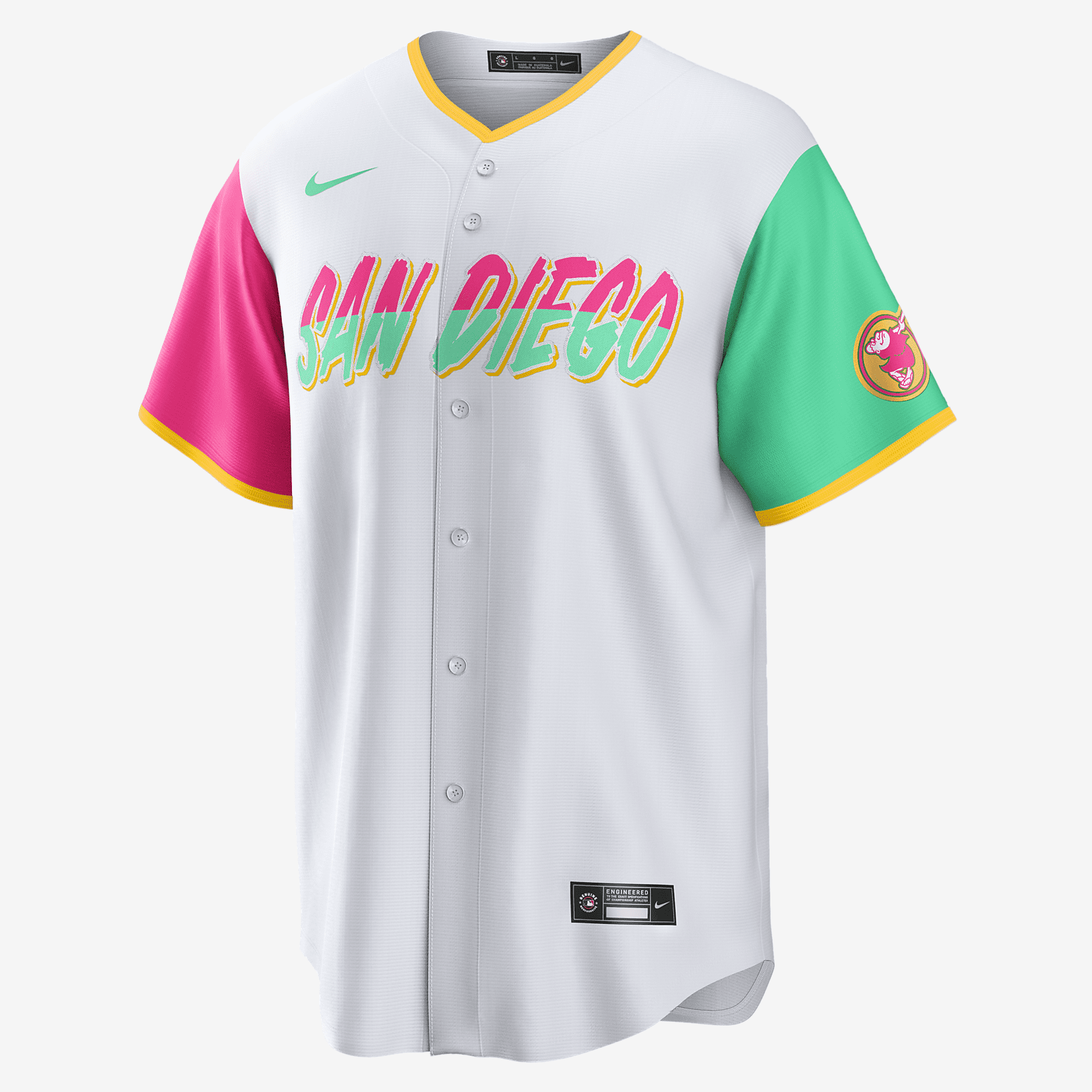 The San Diego Padres City Connect Jersey helps deliver a comfortable fit with its polyester material. It features an authentic design dedicated to the city's multicultural community and small-town vibes to help give you an exclusive look on game day.