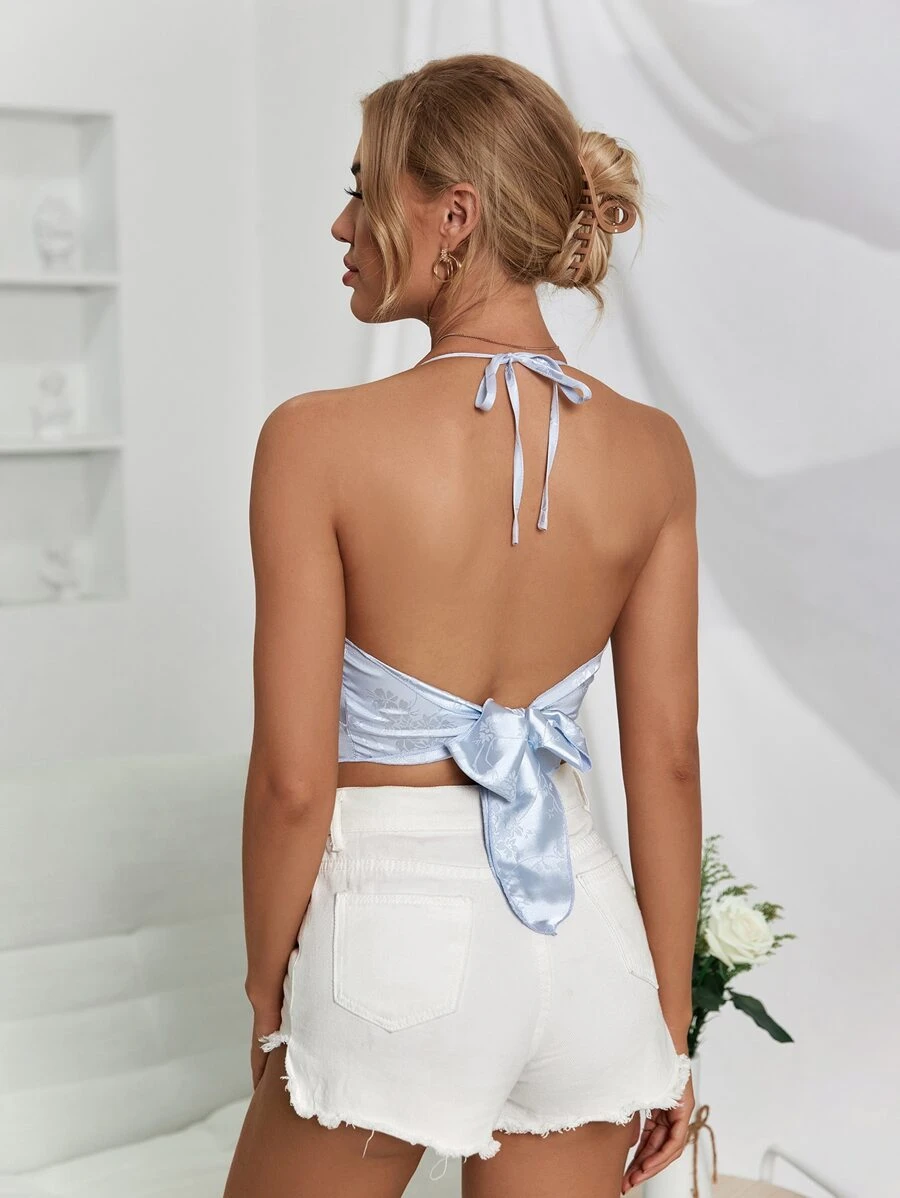 Satin Tie Backless Bandana Halter Top