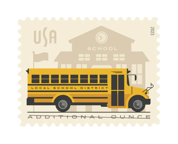 With the release of this new additional ounce stamp, the U.S. Postal Service celebrates the iconic yellow school bus and its role in ensuring that millions of children get to school and home again every day.