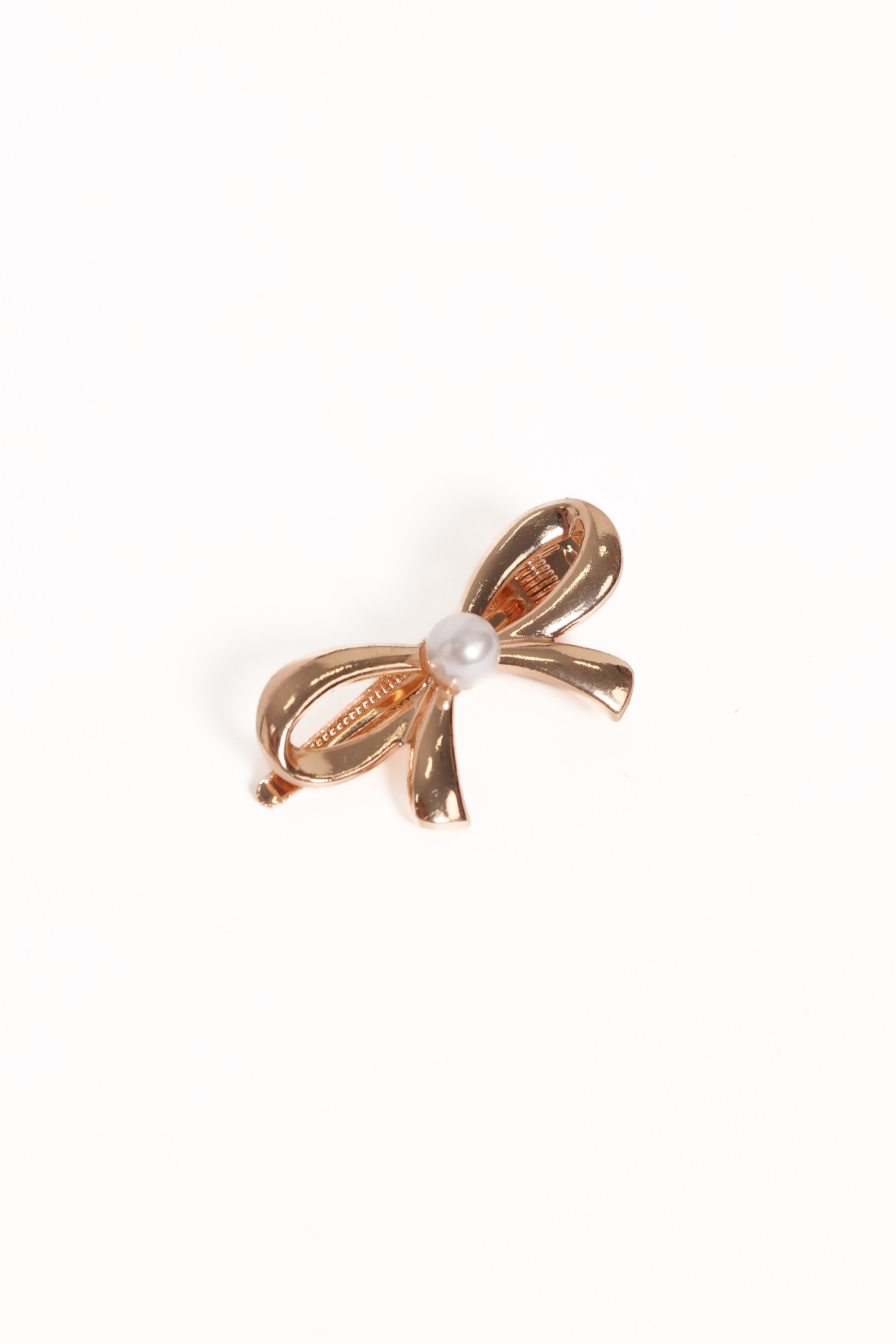 | DETAILS This stunning accessory features a gold bow adorned with faux pearls, adding a touch of luxury to any look. Its lobster clasp ensures a secure hold, making it perfect for effortlessly securing your hair while navigating a busy day or adding a chic touch to your evening ensemble.