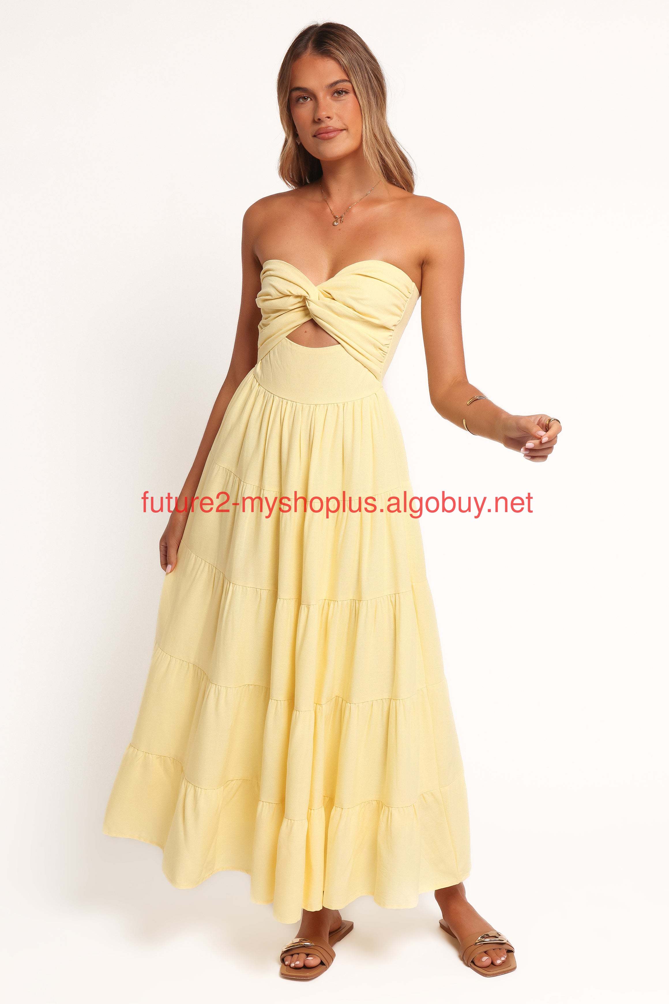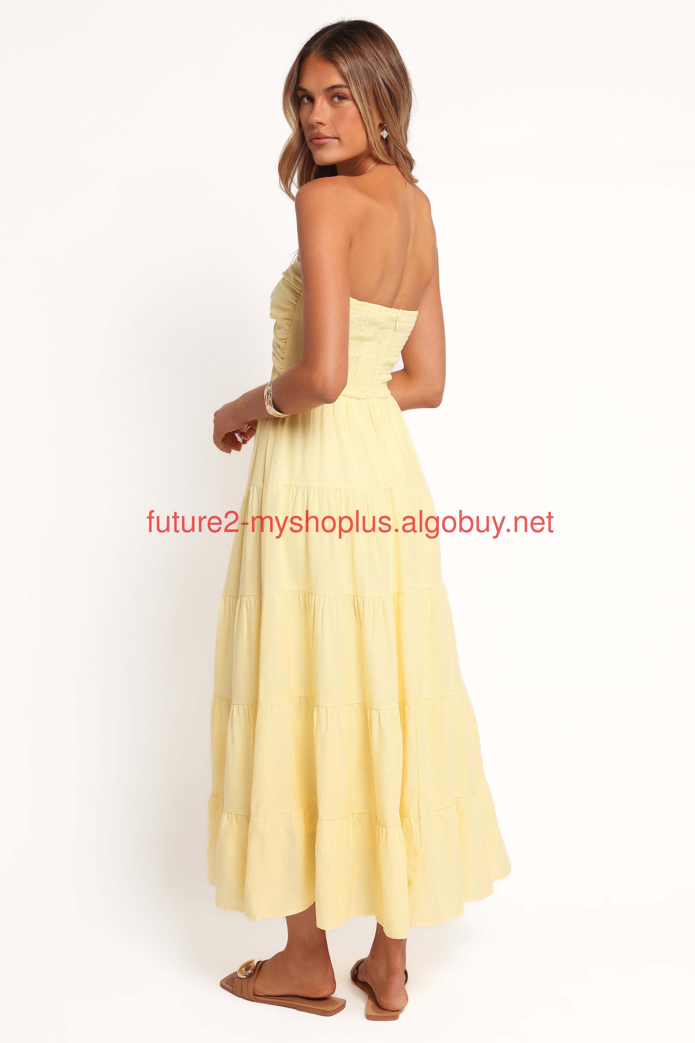 DETAILS Turn heads at every event with the effortlessly chic Sitara Strapless Midi Dress in vibrant yellow. Designed with a flattering strapless silhouette and a sweetheart neckline, this dress combines elegance with comfort thanks to its inner rubber bust grip and elasticised shirred back panel.