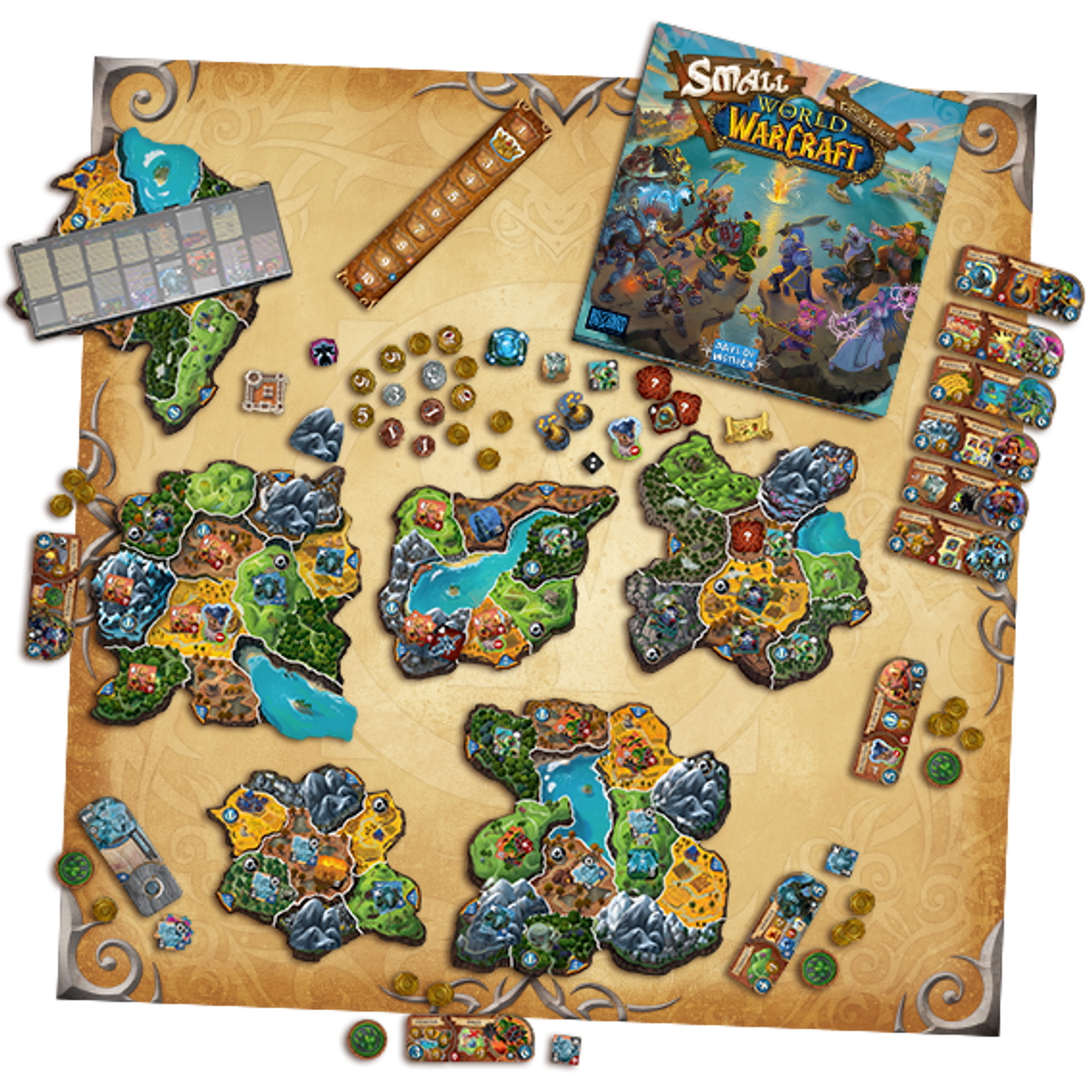 Small World of Warcraft is a stand-alone board game set in Blizzard’s glorious video game universe, Azeroth. 2-5 players vie for control of several islands in this hostile world and their only hope will be to pick the right combination of races and special powers. After staking your claim to a piece of land, defeat your neighbors and expand your territory. If you can occupy legendary places and control powerful magical artifacts, you'll reach new levels of domination. However, empires must eventually fall, so be ready to put your over-extended race into decline and lead a new one to glory so you can eventually rule Azeroth.
