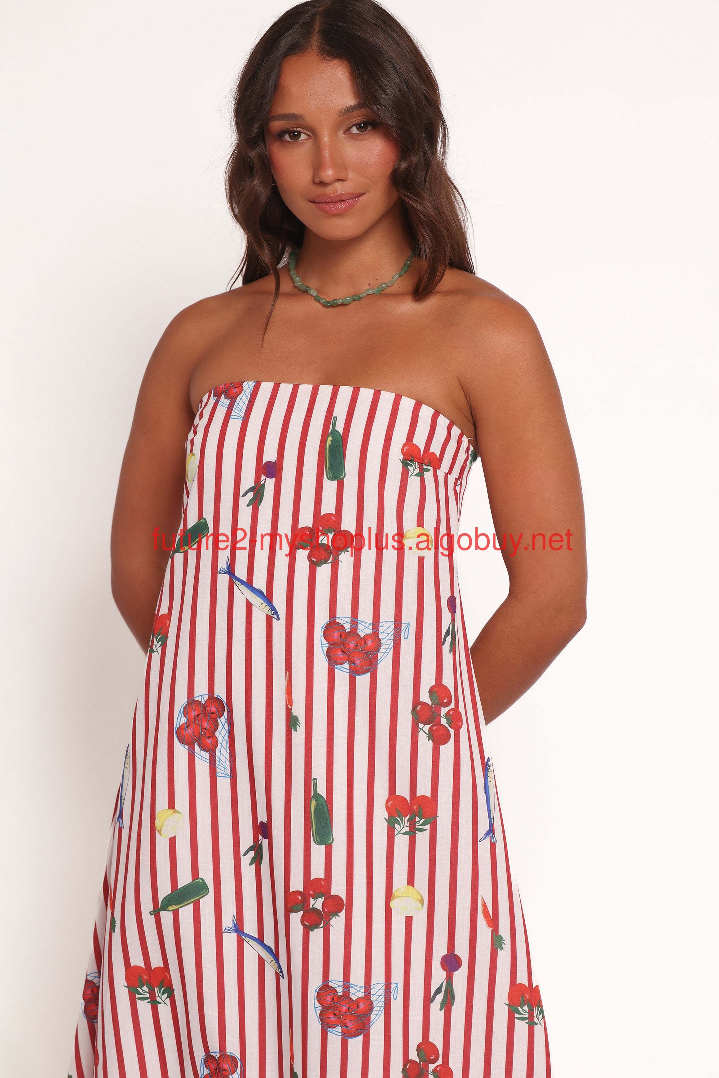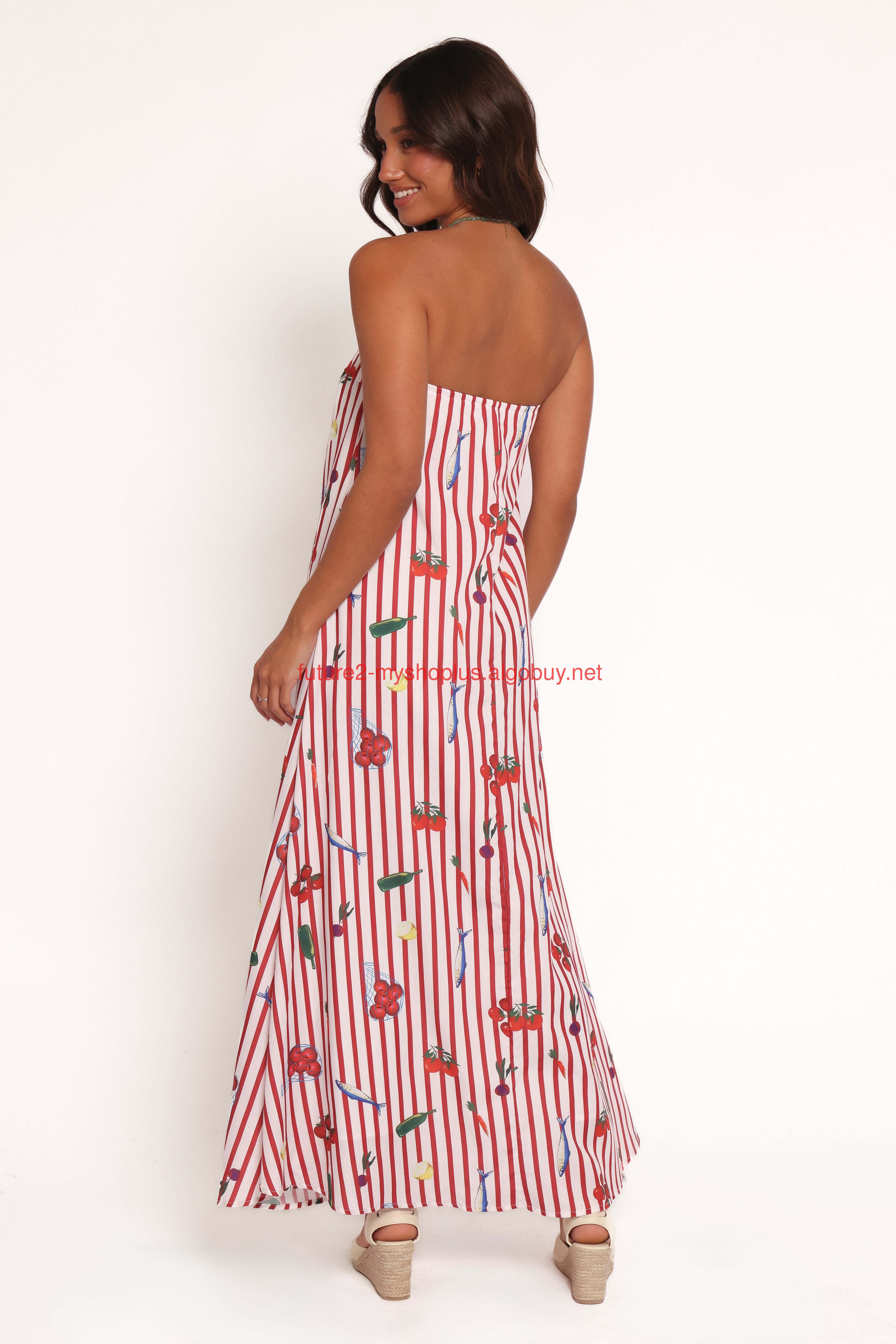 DETAILS Turn heads wherever you go with the Soph Strapless Maxi Dress in the fun Red Picnic Print. This strapless stunner features a sleek maxi length and a straight neckline, creating a silhouette that exudes effortless elegance.