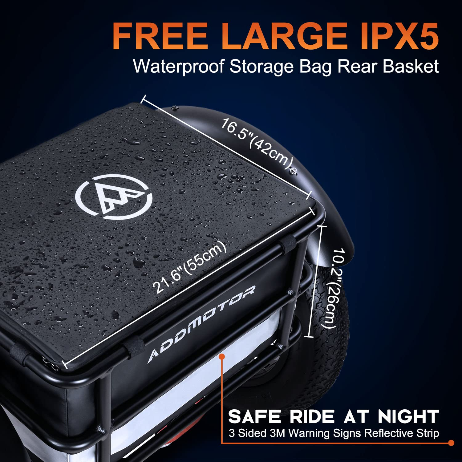 Answer:Rear Basket Size: 21.6" x 16.5" x 10.2"