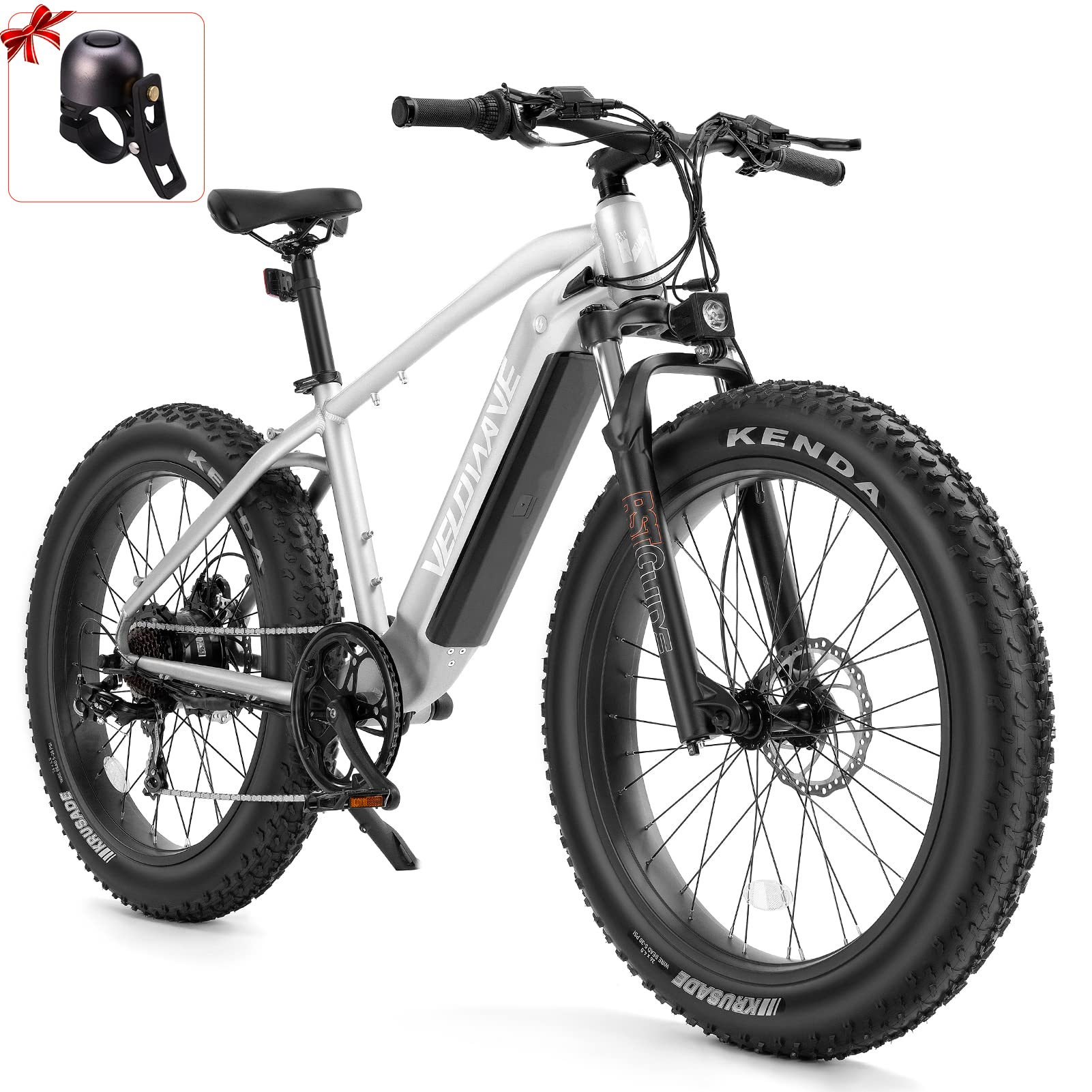 [EXCELLENT RIDING PERFORMANCE]Electric mountain bike equips with professional SHIMANO-7 speed shift gear, more precise and more sensitive. Easy operation LCD intelligent display, which you can operate 5 levels pedal assist and shows the speed, mileage, power of the ride.Kenda 26"*4.0" fat tire electric bike for all terrains, wear-resistant, excellent grip and slip resistance.