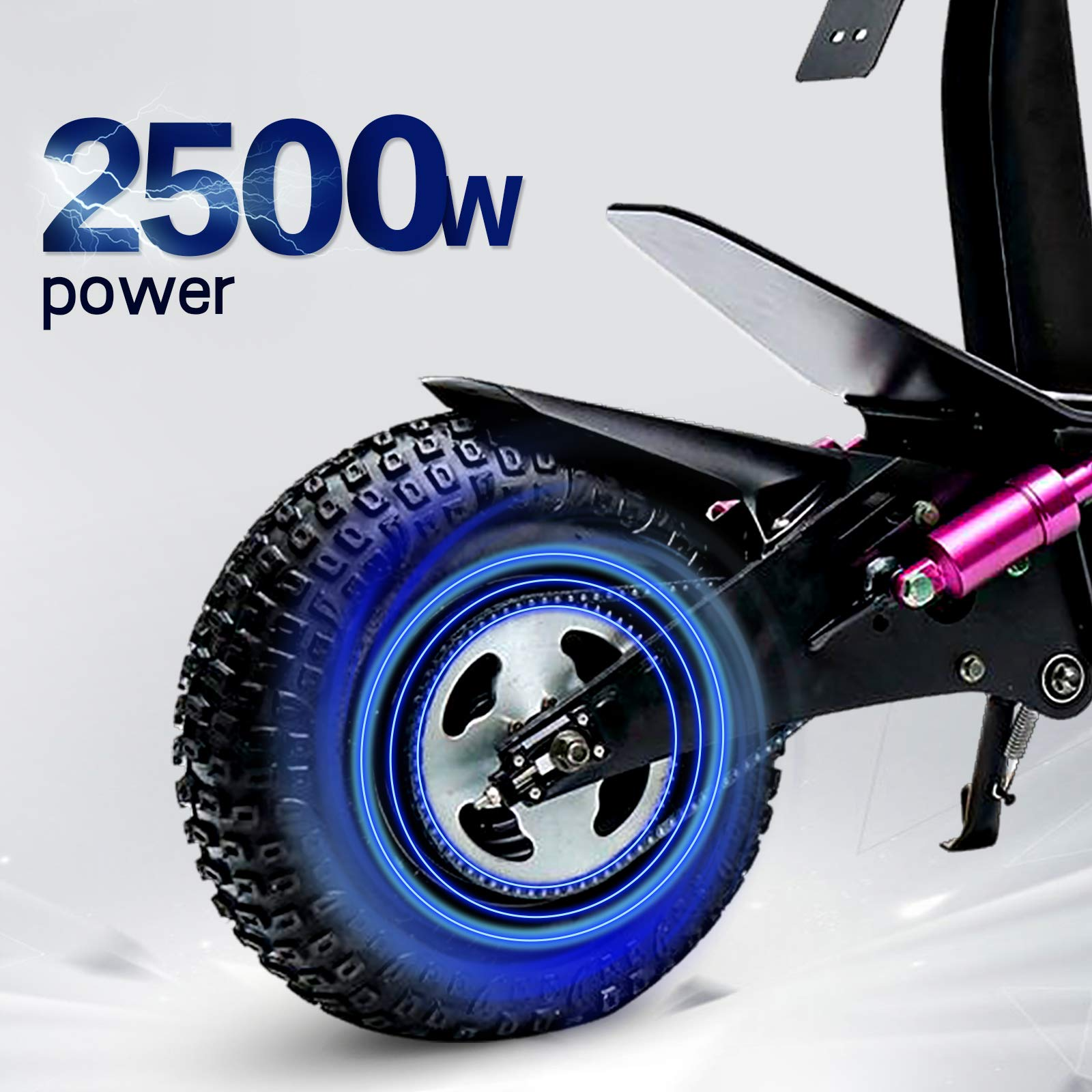 [2500W Powerful Motor]-electric scooter features powerful motors, 48V 2500W high speed brushless, can achieve the max speed 32 MPH(weight dependent).You can enjoy the exciting riding.