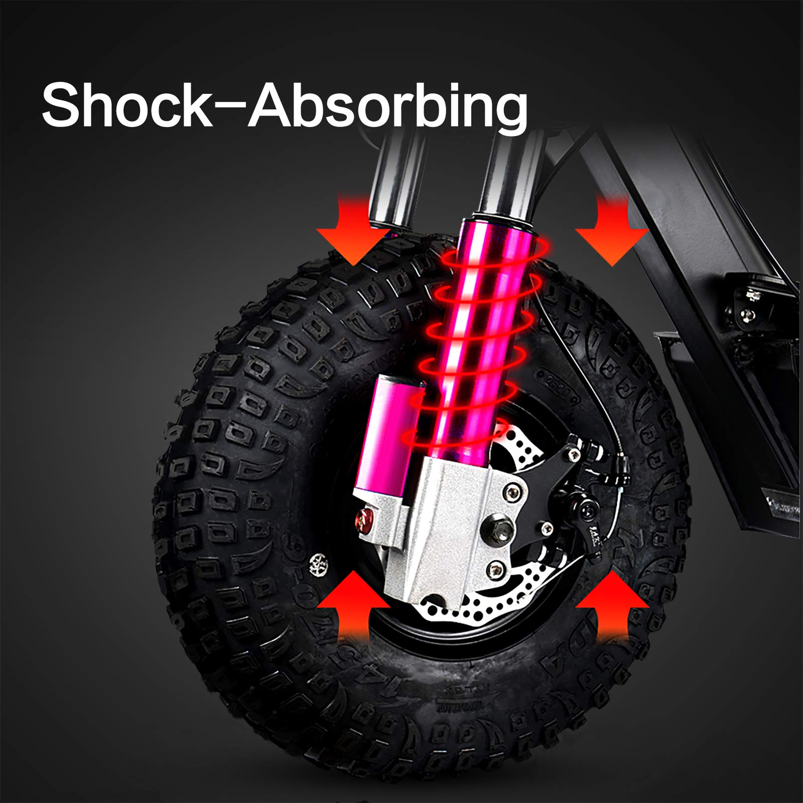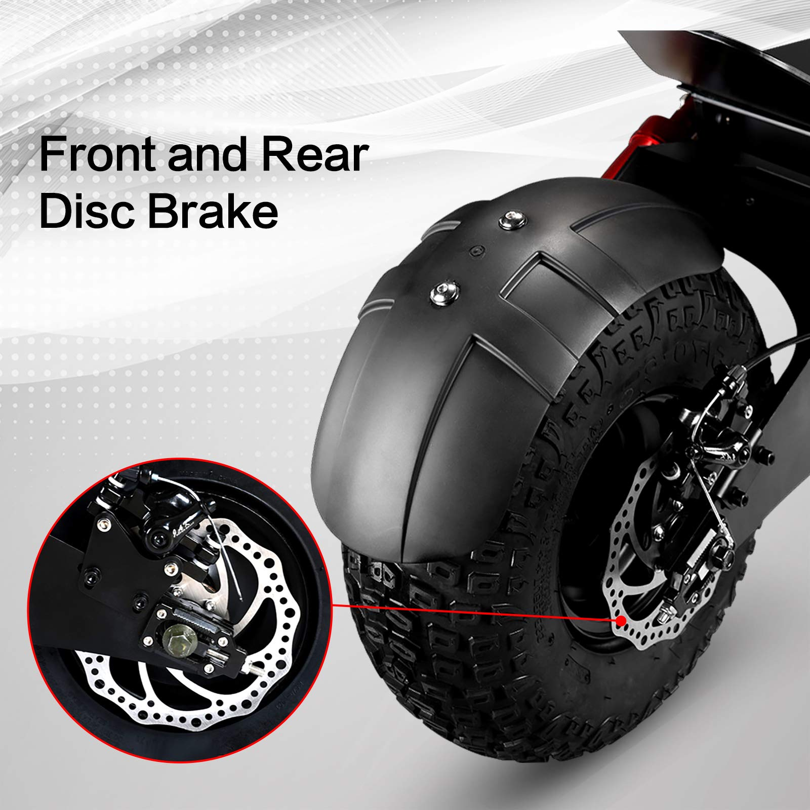 [More Comfortable and Safer]-With advanced shock-absorbing and anti-slip pneumatic fat tires to make your ride comfortable even on rough surfaces or speed bumps. the front Disc brake and rear disc brake double brake ensure braking system safer.