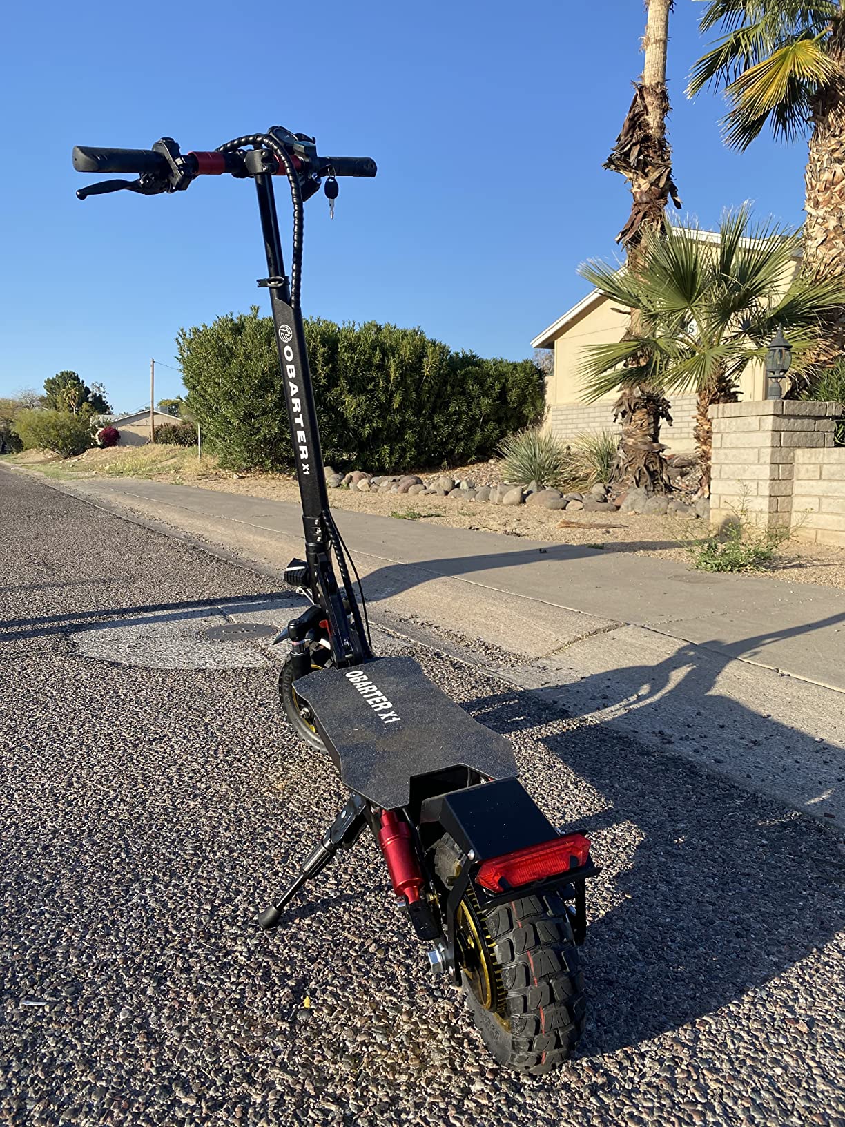 Safe, Comfortable and Style - The 11 " thickened Heavy Duty Vacuum Off-Road Tires have high elasticity and wear resistance. 160MM disc brakes and EBAS e-brake provide powerful braking force and shorten the braking distance and a wider deck to stay balanced on and the thickened frame structure can load up to 440 lbs.The most popular LCD screen is easy to view. The scooter has ultra-bright front LED headlight, running boards with cool colorful LEDs