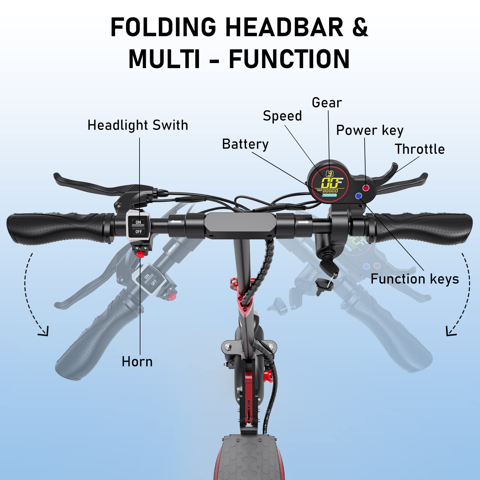 UNIQUE AND HUMANIZE - The adult electric scooter is equipped with wider foot anti-slip pedal for larger feet support, high lumen head lamp for safe night riding, and clear LED display for relaxing riding.