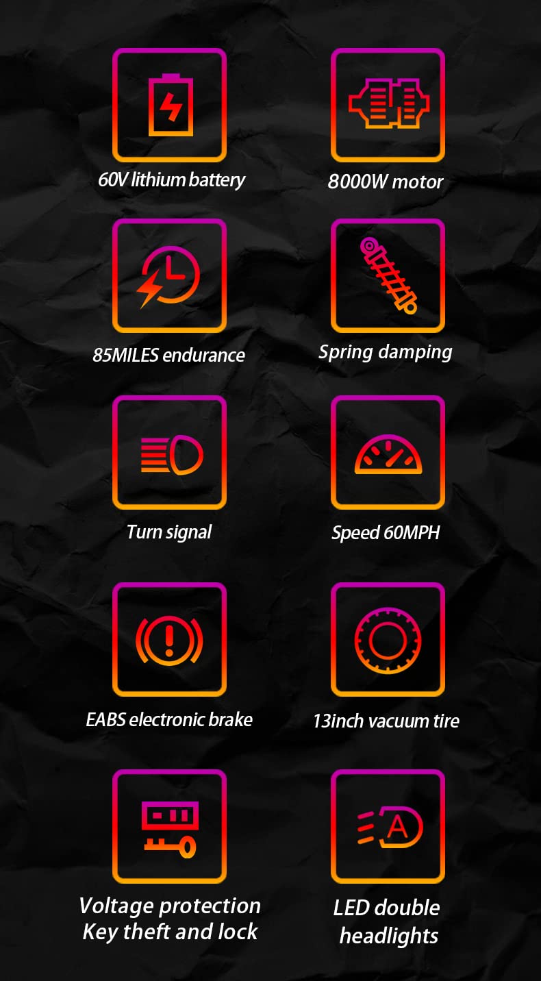 Four-bar body, Double drive, single motor 4000W, total power 8000W, super motor. The maximum speed is 60MPH,90 Mile Long Range Battery, and the maximum capacity is 880 lbs.plenty of power Meet all your needs for speed.It can easily handle 45° steep slopes, with detachable seats for sitting/standing riding, making it an ideal commuter scooter