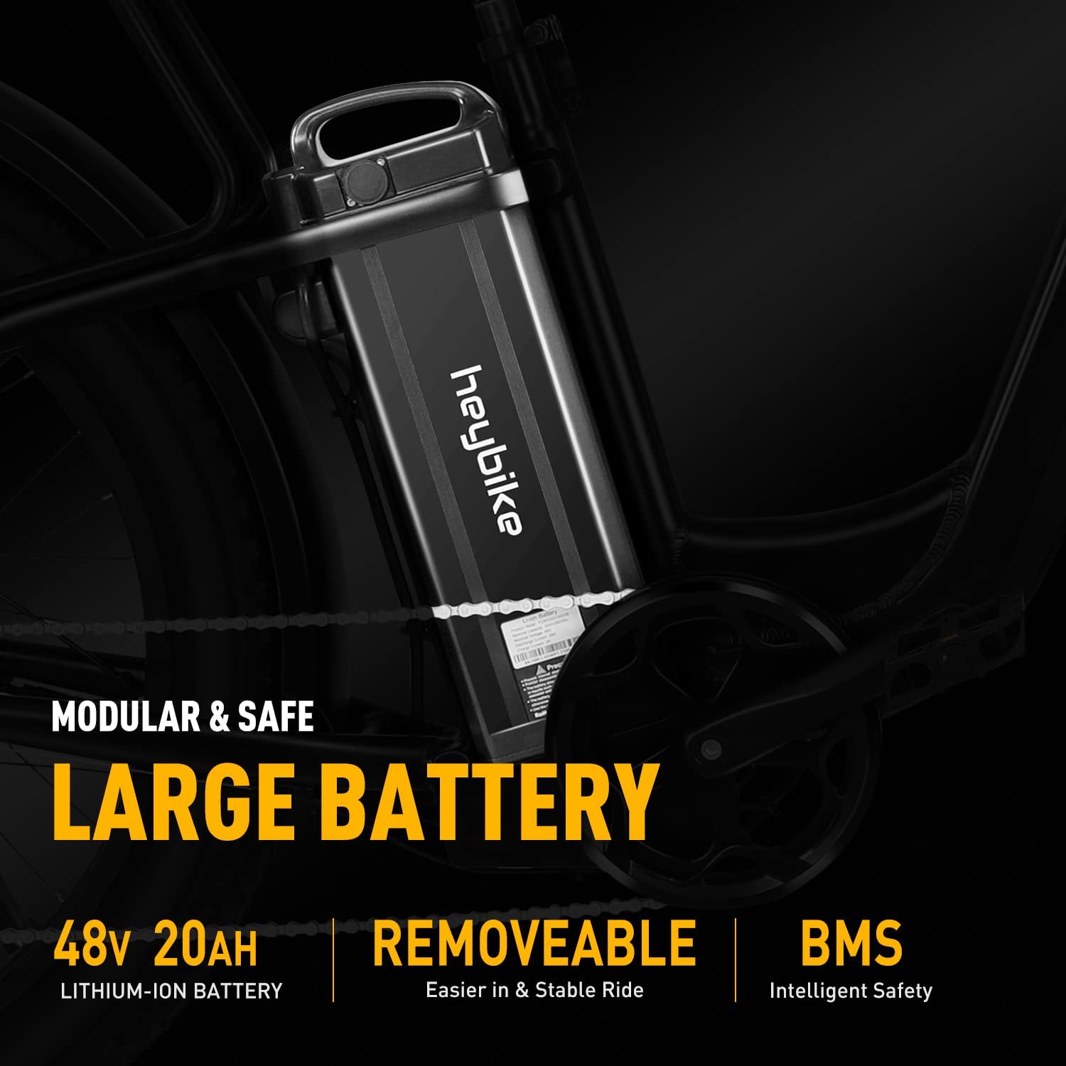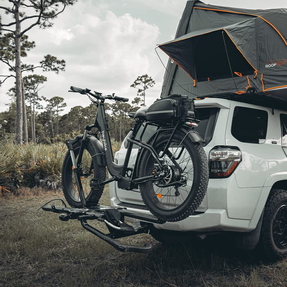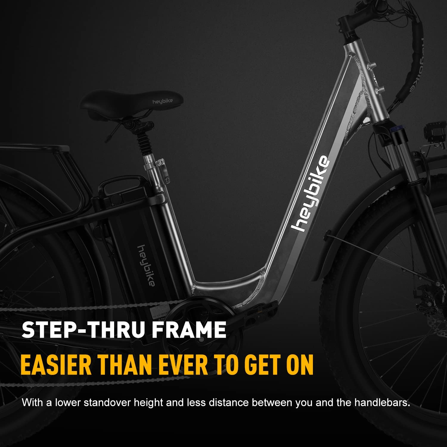 Sturdy Step-Thru Frame - Heybike Explore is designed by the most popular step-thru frame which is easy to lift your leg over the ebike. Sturdy rear rack extend the load capacity up to 120lbs. The extra water bottle holder and a position for installing a front basket (excluding) are design for storage expansion. Bring more possibilities to your trip!