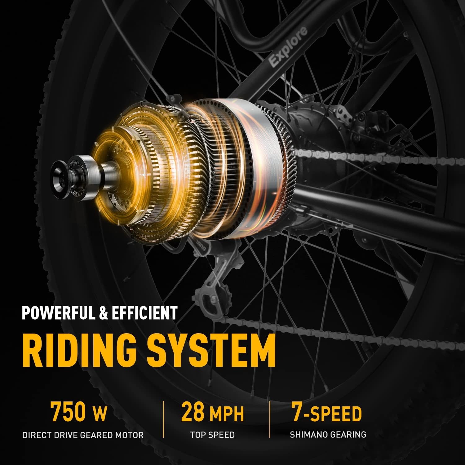 Upgraded Removable Battery - Explore electric bicycle comes with 48V 20AH large battery and a 750W powerful motor which provides a high speed up to 28mph shortening your daily commute and ensuring excellent riding experience off-road.