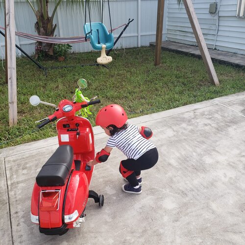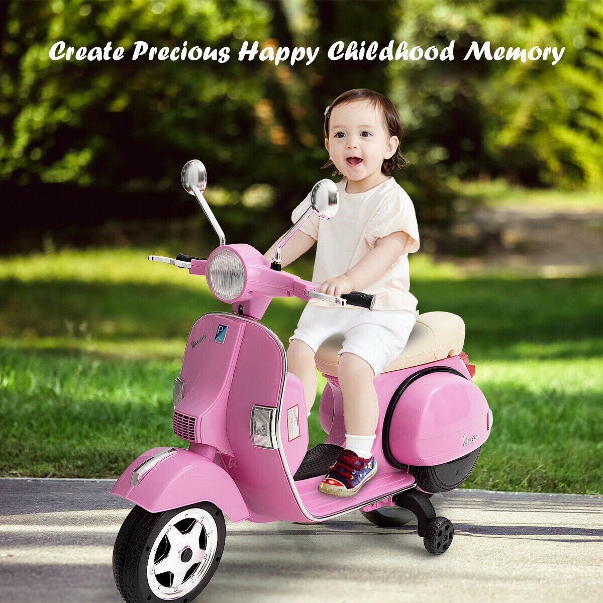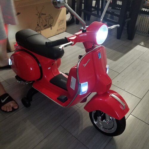 This cute battery-powered Vespa scooter can play several interesting stories and music so that kids will no longer get bored during riding. Additionally, there is a USB slot, SD slot, and MP3 port, designed to allow quick access to a great number of music kids prefer to listen to. The motorcycle also adopts training wheels in case of falling over. In this way, it will keep stable all the time to provide better protection. Turn on the start-up key, choose either forward/backward mode, and press the foot pedal, what a simple operation for your kids. Other highlights including adjustable volume, bright lights, loud horns, and comfortable seats are waiting to be discovered by your kid.