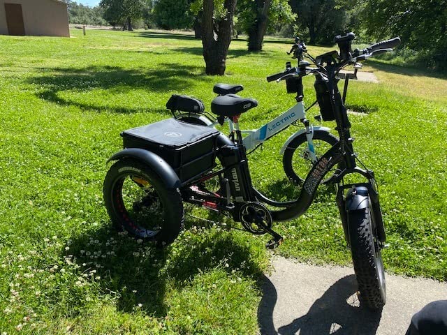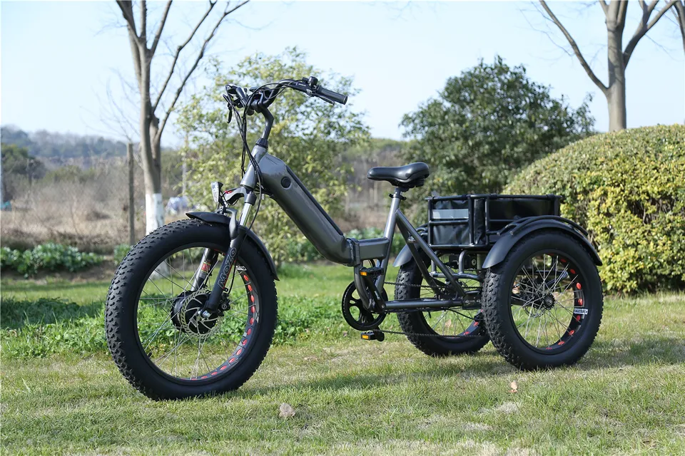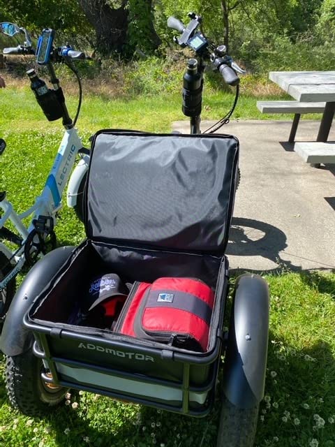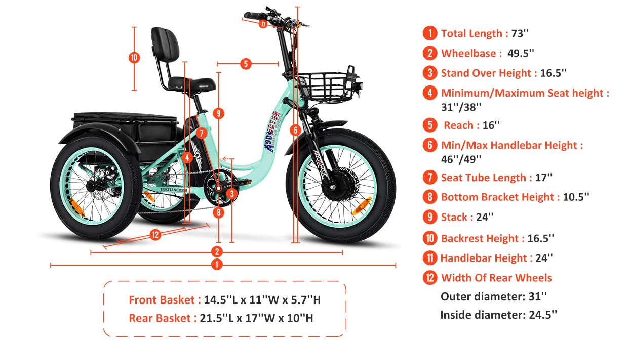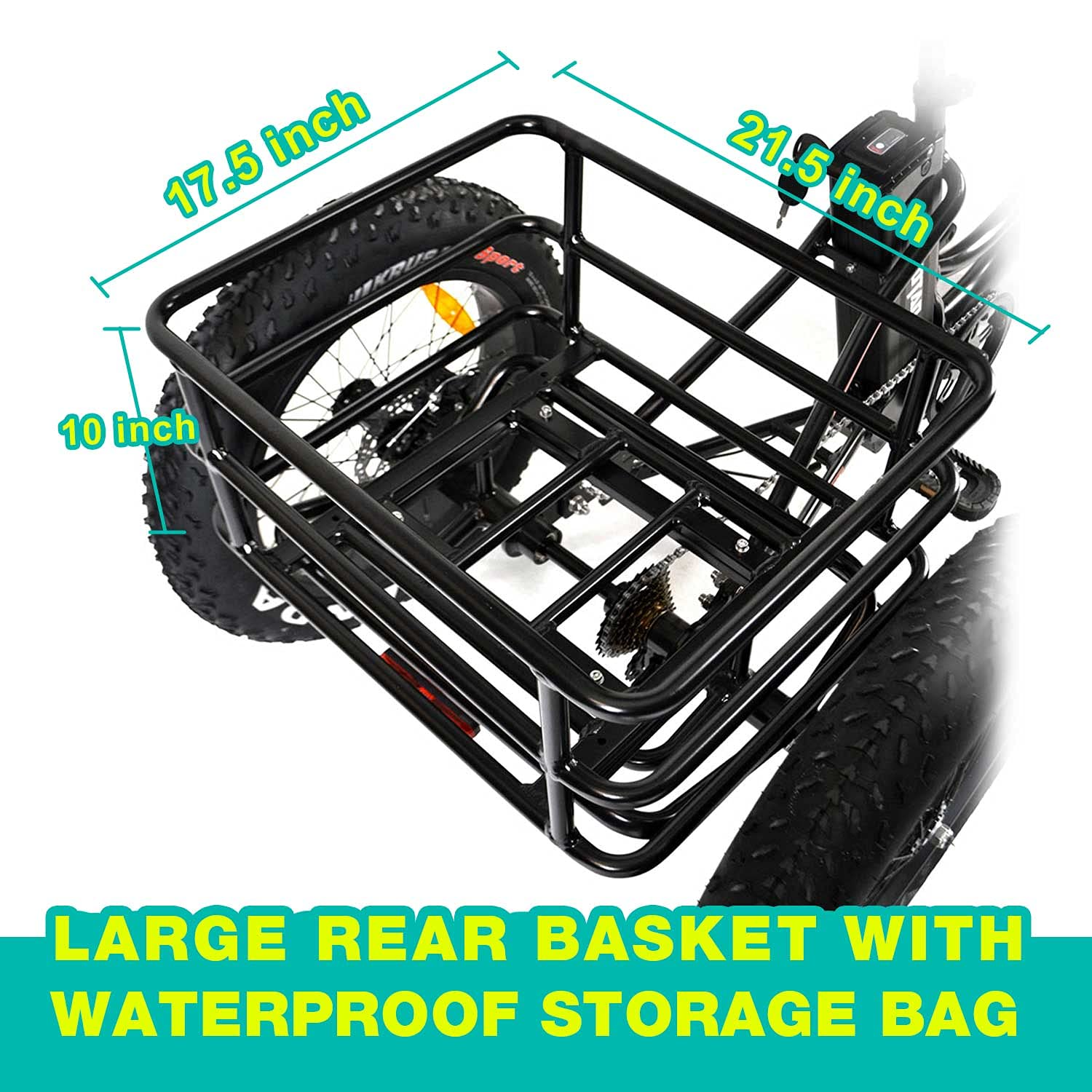Large Capacity Baskets -----Addmotor electric trike has a front basket and a large rear basket, load up the convenient basket with groceries, supplies, or whatever suits your daily shopping while staying in shape.