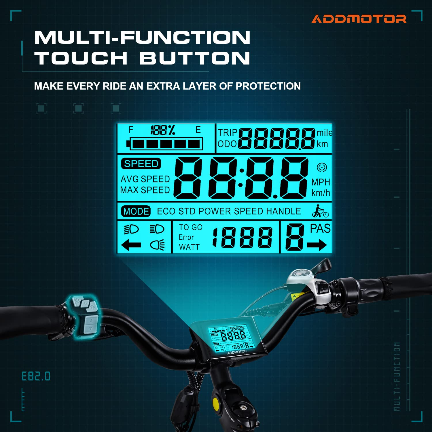 Removable Battery------Removable 48V 20Ah Samsung lithium battery; A USB charging port enables you to charge your devices while you ride. With night mode LCD ensured visibility at night and shows mileage and speed.
