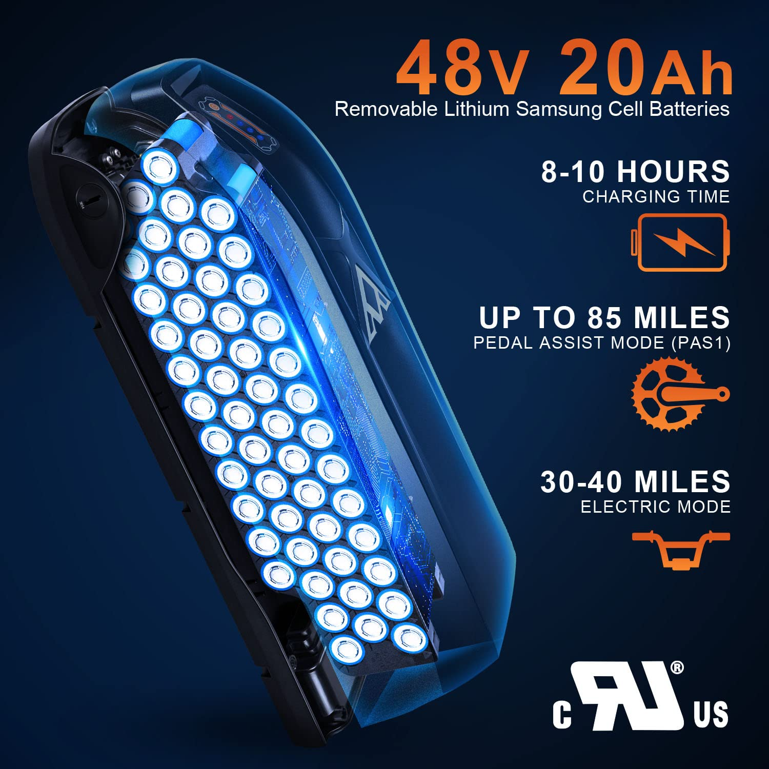 - (UL Certified) Battery: 48V*20AH Samsung Lithium Batteries In A Sealed Removable Pack