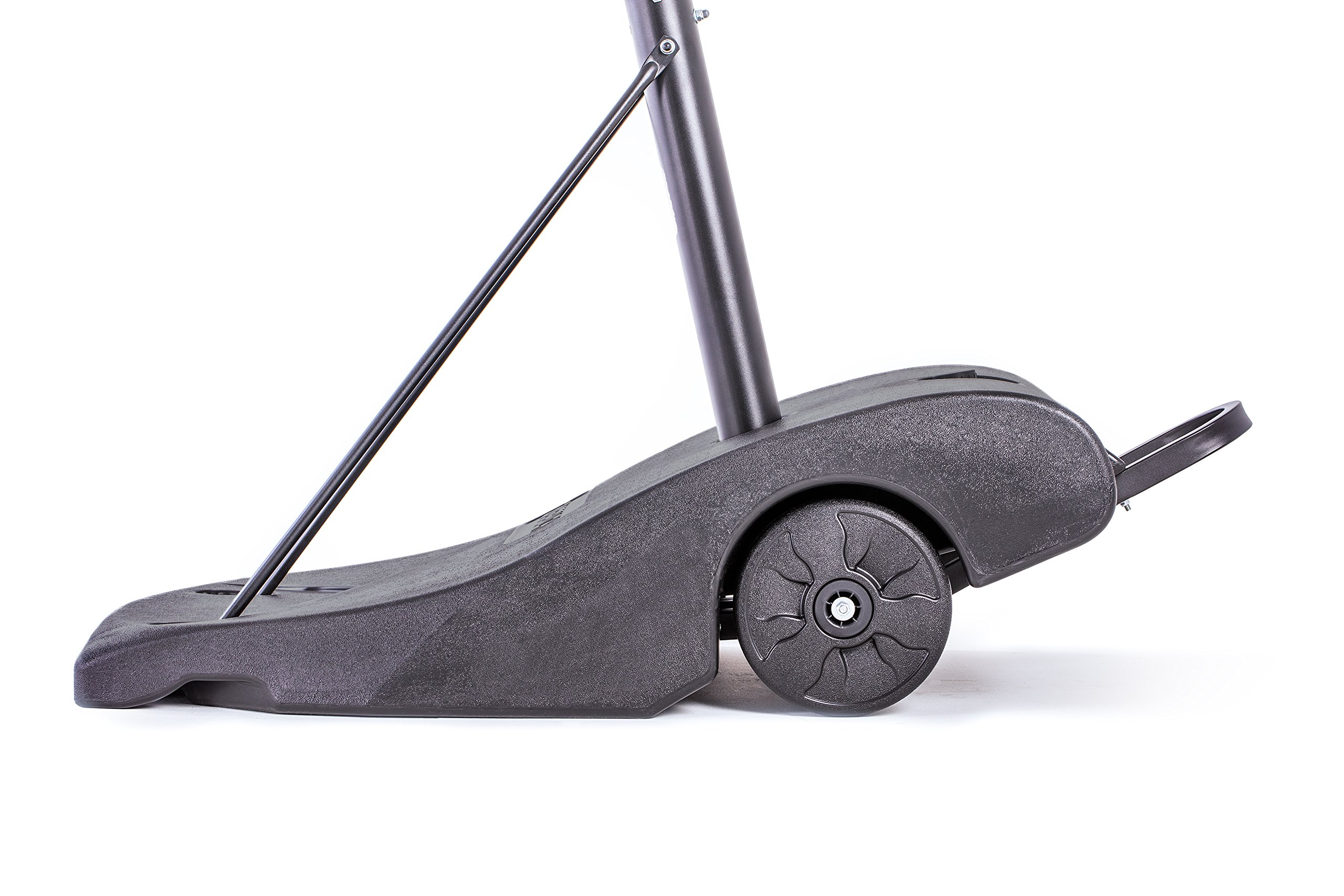 The Silverback NXT is pushing the envelope for portable basketball hoops. The advanced technology and strategic engineering of this goal makes for faster assembly, improved rebound, superior strength, unmatched stability, and effortless transportability. Compare the features of the Silverback NXT to other portable goals on the market, and you will see why this hoop is the next big thing in portable basketball hoops. - Stabili-Frame – The Silverback NXT features Stabili-Frame technology, creating unmatched stability for increased playability and added safety. The slanted pole design was engineered to offer even weight distribution across the entire base. Unlike competitor goals, the pole directly connects to the steel frame below the base, increasing the integrity of the structure. Compare to most portable hoops that utilize the blow molded base as a support structure – which is typically the first piece that fails. The shape of the base and the weighted ballast wheels create an optimal center of gravity, ensuring your goal will stay upright. Infinity Edge Backboard - Unlike traditional backboards that are framed by a plastic or metal edge, the Silverback NXT features an Infinity Edge Backboard with edges that wrap around to the back of the backboard as one continuous material. This design not only creates the modern, clean look of the hoop, but, more importantly, gives the backboard unmatched strength – greatly reducing “dead" spots in the backboard that are common among portable hoops. This technique, folds the edges of the material backward, creating a stronger face for superior rebound. Ergo-Move - The sloped base design on the Silverback NXT creates a completely unique weight distribution that allows the goal to be moved by two people with much greater ease than traditional portable basketball goals. This design enables the goal to be tilted backward onto its large weighted wheels, relieving much of the weight that a person must support, similar to the engineering of a wheelbarrow. The hoop is then easily rolled to its new location while the rear kickstand prevents the goal from tipping over. Quick-Play - No one likes long assembly projects, so the Silverback NXT was designed to make assembly as simple as possible. The NXT comes partially assembled with attached hardware, so you simply attach the major pieces using only a few required tools. The NXT allows you to assemble your goal in approximately 90 minutes, so you can start playing.