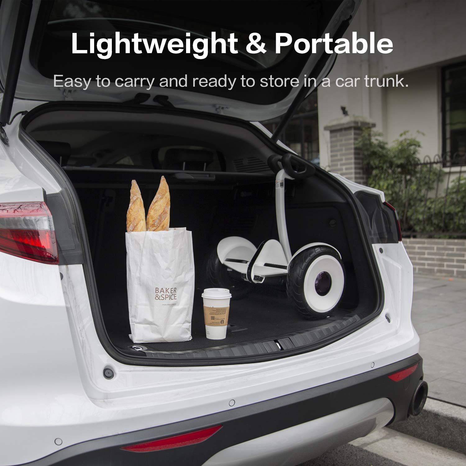 Sturdy & Powerful : Ninebot S is compact, weighting just 28 lbs with a max load of 220 lbs. Thanks to the dual 400W motors, it can easily reach a max speed of 10 mph. A single fully charged battery can run up to 13.7 miles, climbing a max slope of 15°