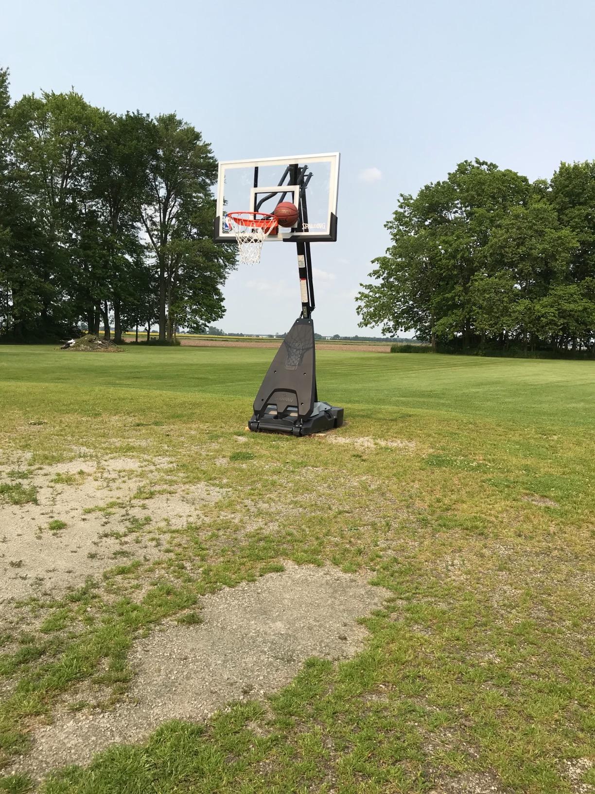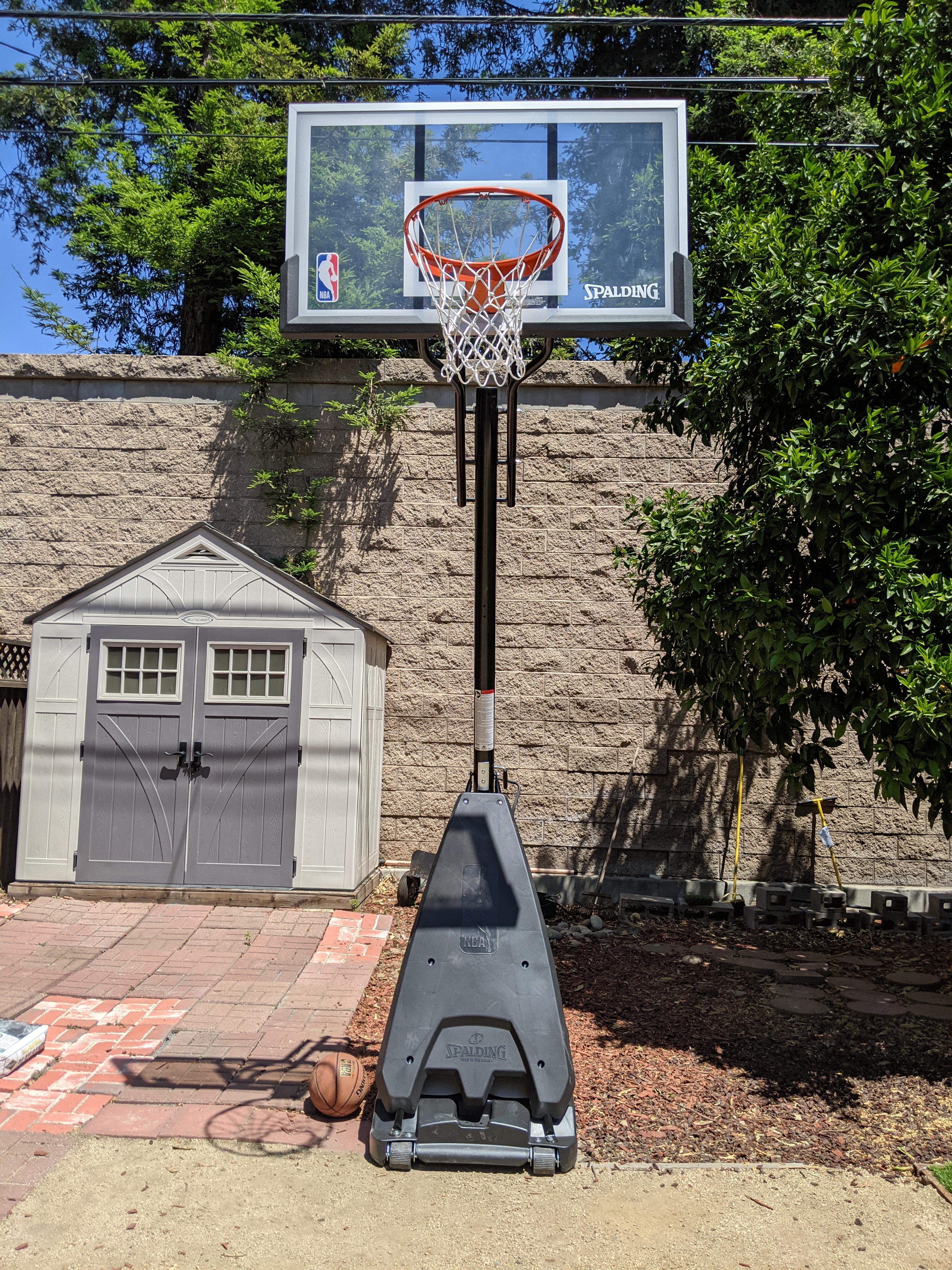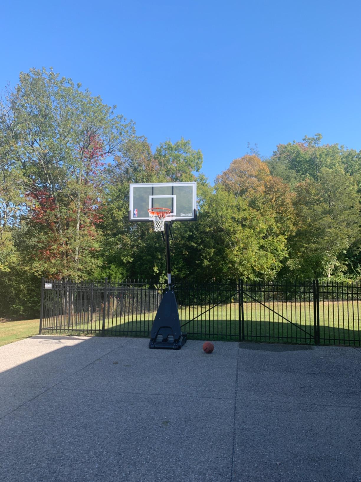 - Breakaway Rim with Board Pad. Board Size-54 inch, Height- 31.8 inches. Board Composition- 1/4 inch Glass
