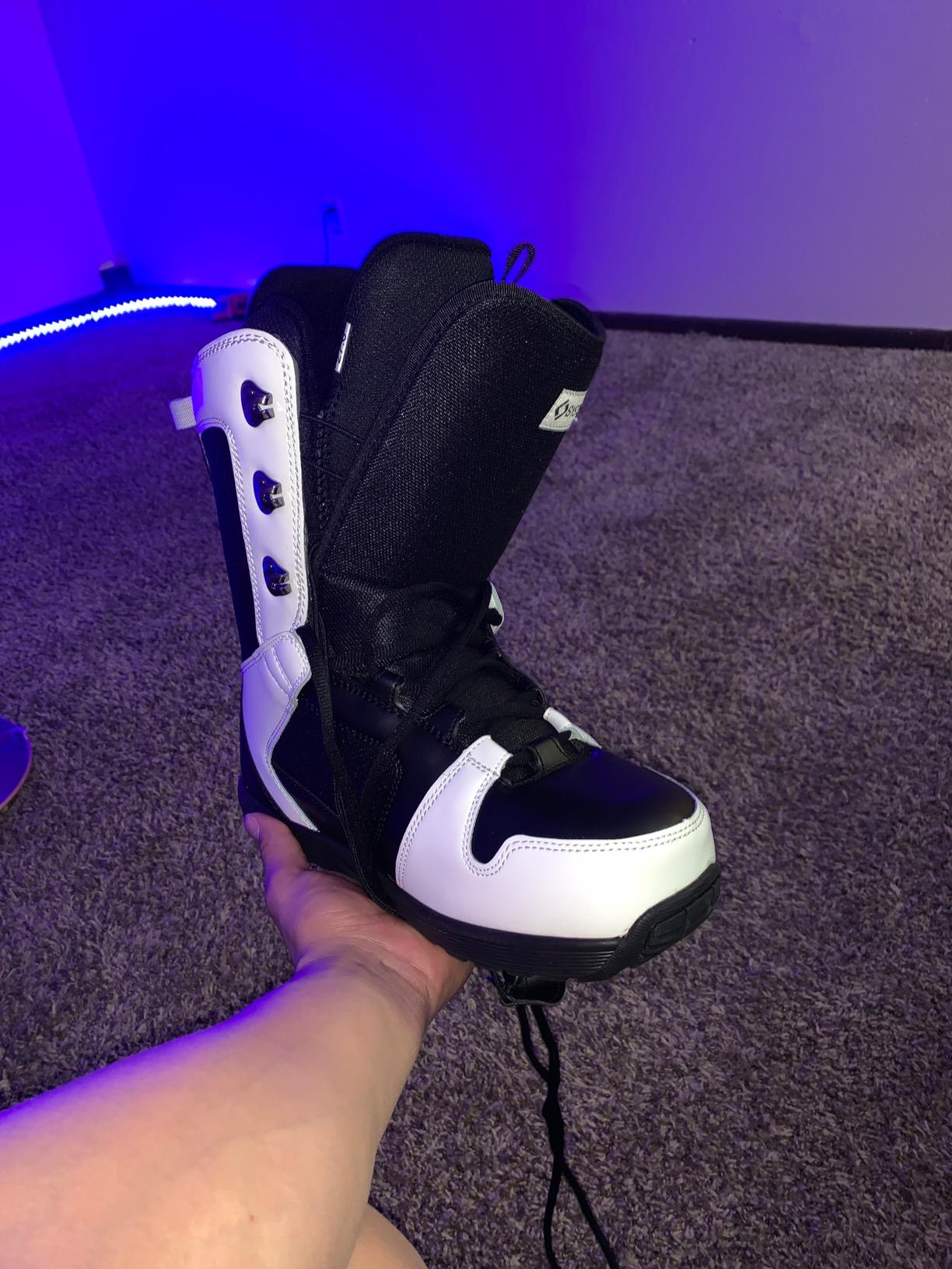 System Timeless Snowboard : The newest board in System's line, the Timeless is a snowboard guaranteed to live up to it's name! Built around the strongest and livliest core System has, the 3D Core with Edgelock is full tip to tail poplar with high density stringers running just outside the center of the board as well as down each rail, easily driving and holding your edge in to any snow conditions! Then an artisan grade heartwood stringer is set in the center of the board creating explosive power and response from the park to big mountain carves! Profile: Camber Rocker Camber CRCX: An all new design, this is a rocker dominant "camber-rocker-camber" profile. Overall rocker creates tons of float in powder and prevents edge catches for a super smooth ride. Small sections of camber in the tip and tail add explosive pop and increases the effective edge making high speed turns a breeze. Camp Seven Summit Bindings: The Camp Seven Summit is one of the lightest bindings we carry and yet one of the most durable as well. The features of this binding are a dream come true. Full length EVA base pad. Either-Or toe strap that can be ridden toe cap style or over the forefoot. System APX Men's Snowboard Boots : Simple and classic styling allows these boots to optimize features like metal hooks for superior lace hold and lasting power. Combined with the newest tech like the Thermofit heat moldable liners for customizable fit and an articulating cuff for smooth flex, you just can't find a better quality boot.