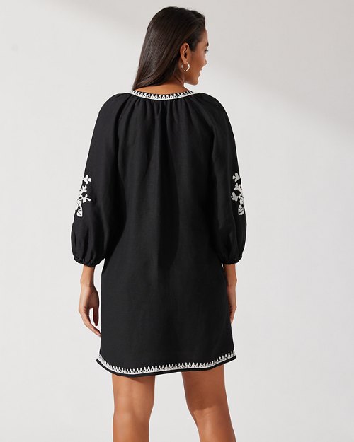 Beautiful embroidery and a soft linen blend elevate this dress to something special. Pair it with strappy sandals for a sweet date-night look, or wear it as a coverup to the beach and lounge in luxury. However you wear it, this dress is sure to impress.