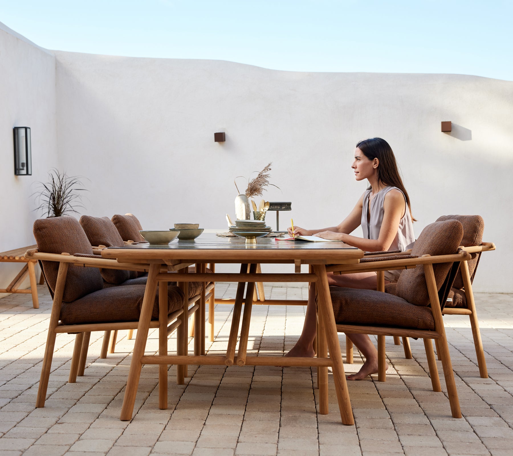 The Sticks armchair from the Sticks series seamlessly combines charm and modern design. Drawing inspiration from sticks, its durable construction ensures a perfect balance between relaxation and dining comfort. The cushions add extra comfort and style. Use it with the Sticks Dining table or as you desire.