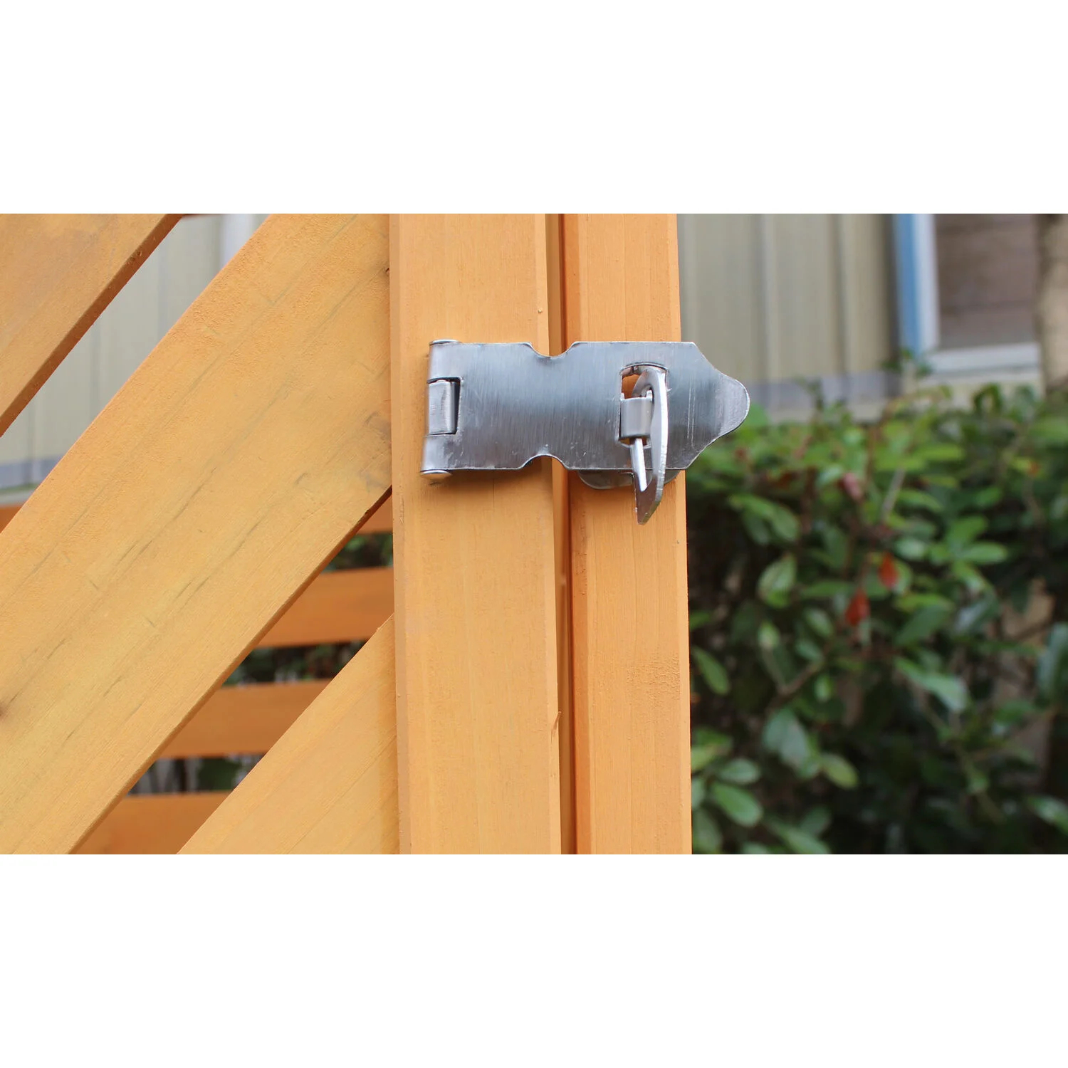 Keep your trash and recycling bins tidy and pest-free with a Wooden Trash and Recyclables Bin Storage Shed. Unsightly trash bins will no longer blight your backyard or stink up your storage shed, instead keep them out of sight and out of mind in one of these simple, yet stylish storage sheds, designed to fit up to two 60 gallon garbage cans or recycling bins. Flip-up one or both of the dual hinged lids when taking out the trash or use the front two doors to move your trash cans in and out of the shed with ease. To keep pests out, the shed comes with a metal, locking latch that accommodates most combination or keyed locks (padlock NOT included). Stable and durable, the wooden shed is constructed with natural fir wood to last through many seasons.