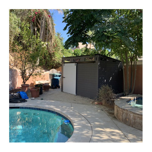 The shed with a unique modern barn door feature is ideal for both its functionality and trend-forward design. With 483 cu. ft. of space, this shed features a sturdy sliding door that allows you to access your items easily and is pad-lockable for added security (lock not included). The reinforced resin floor is built to withstand heavy loads and the metal reinforced, multi-wall resin panel construction provides additional strength and stability. The large transom windows allow for natural light making it easy to find what you need. This shed is beautiful, strong, and built to withstand the elements all year long.