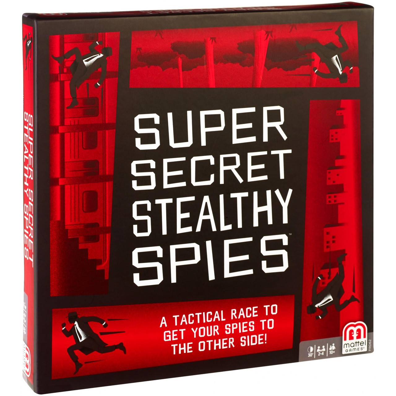 Super Secret Stealthy Spies is a fast-paced, easy-to learn strategy game of big moves. You have four spies who need to leave your home base and enter the field on a very important mission. Covertly move through parks, buildings, and subways and be the first to infiltrate the rival bases! Use the subway entrances to travel to other subway spaces. Use parks as cover to travel several spaces in one turn. Mix up the game board tiles for a different game each time. a little luck and a lot of stealth will help you to win this spy game. Includes 12 Game Tiles, 4 Home Bases, 1 Subway Die, 1 Rules Sheet, and 16 Spy Movers in four different colors.
