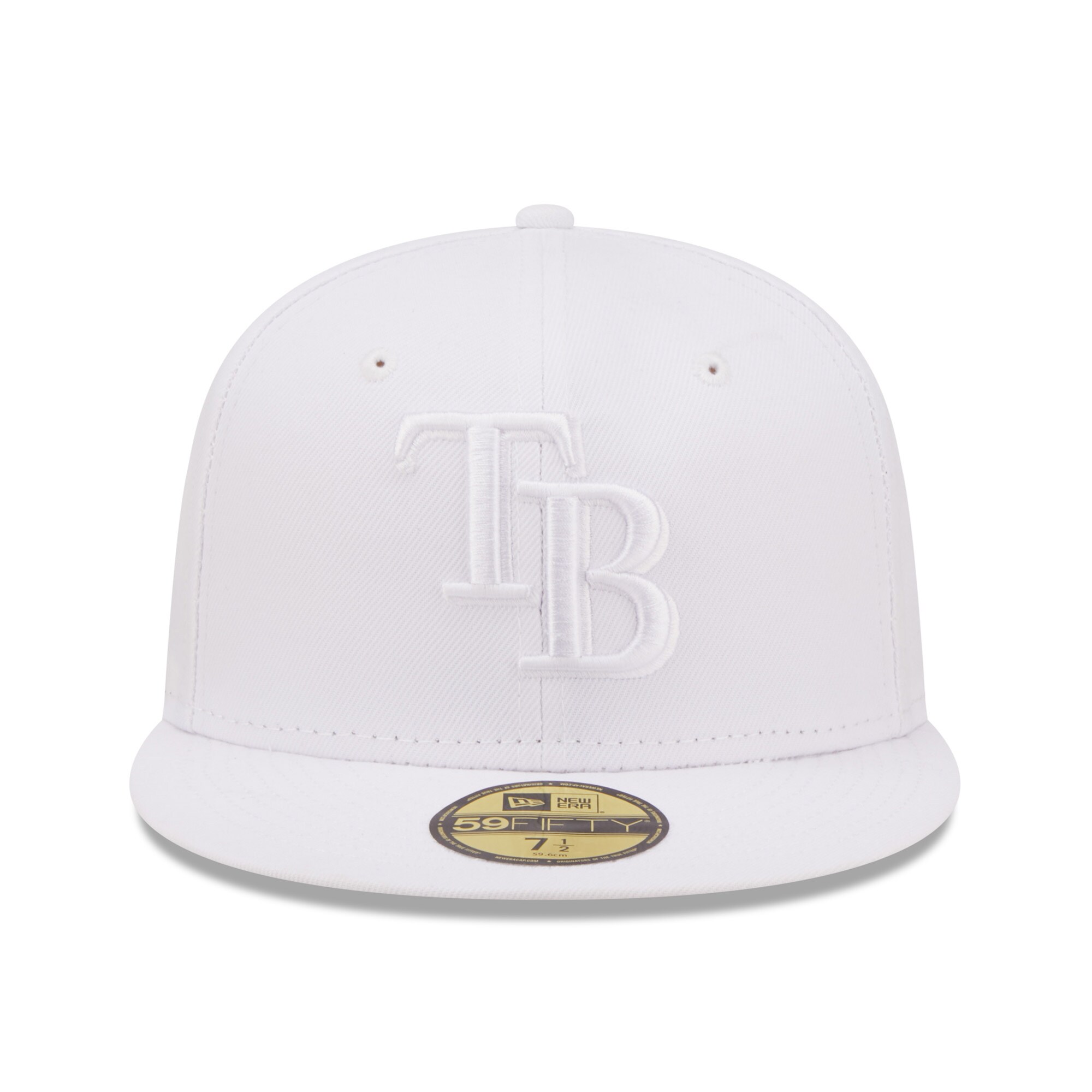 Add a striking touch to your Tampa Bay Rays collection with this White on White 59FIFTY fitted hat from New Era. Along with a high crown it offers a structured construction to add some street-ready style to your fandom. Plus it features spirited Tampa Bay Rays graphics in the same shade as the cap itself to further elevate any look you put together.